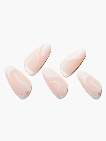 This press-on nail style may be simple, but it is in no way boring. Rouge is a unique press-on nail that features an almond nail design with a shiny finish on each finger. The swirls add a level of depth and color that is often not achieved with other nude nail looks and help spice up an otherwise plain manicure. You can use these in the office for a professional look. You’ll be sure to receive plenty of compliments!