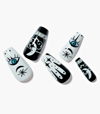 Tarot nails are versatile, fashionable, and fun, allowing you to take advantage of art to elevate your nail game. Glamermaid's Tarot press-on nails are unbeatable as they are one in a million. The eye, hand, and moon give an instantly bewitching and stylish look that you’ll want to put on repeat. Whatever your style, this press-on nail is a sure way to slay.