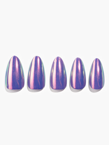 Glamermaid's Disco Stage press-on nail has the effortless shine and iconic gleam that’s pretty hard to ignore, but nearly impossible to forget. These glitter nails may not actually glow in the dark, but it looks as though they’ll glow just about everywhere else! The beautiful purple and blue undertones give an almost otherworldly look to this supernatural nail art style, and you may not bring yourself to look away.