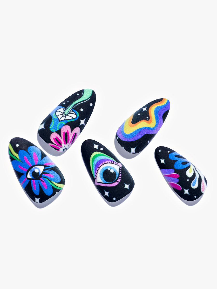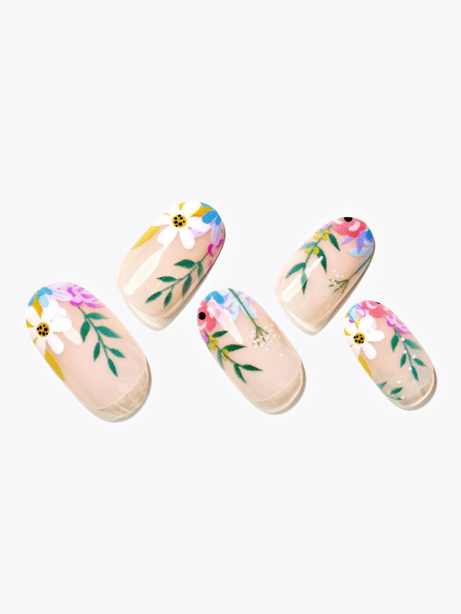 Abstract Flora: For those who seek a modern twist on plant-inspired designs, our abstract flora press-on nails are the perfect choice. These designs play with shapes, colors, and patterns, creating a contemporary interpretation of botanical beauty that's sure to turn heads.