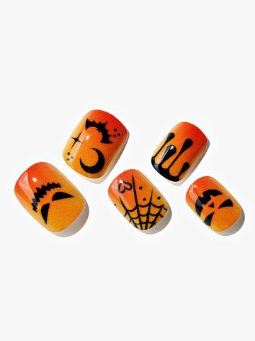No press on nail designs can give you a better Halloween vibe than these Halloween Vibes press on nails. They have an orange background and are designed with horrible pumpkin faces, moon, bat, blood, and spider web. Nothing can go wrong in your life when you wear these press on nails. Wear them and celebrate this Halloween with style!