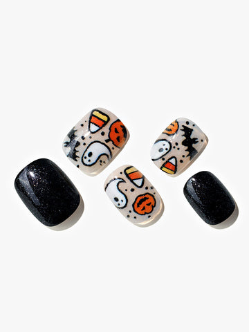 Pumpkins, Ghosts, and Bats are all that we see during the whole October month. If you are also a fan of these items, then have them on your nails too. The Ghost Celebration press on nail design is for the coolest people. These press on nails have a fine glitter finishing making them look heavenly. They are magical and will cast a spell on everyone around you!