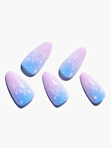 This press-on nail design is a sort of minimalist take on the flame trend: Ice And Fire press-on nail design has a monochrome color scheme, which combines a baby pink and a blue shade with white outlined flames for a fun Barbie effect. It gives off a warm and cool mix.