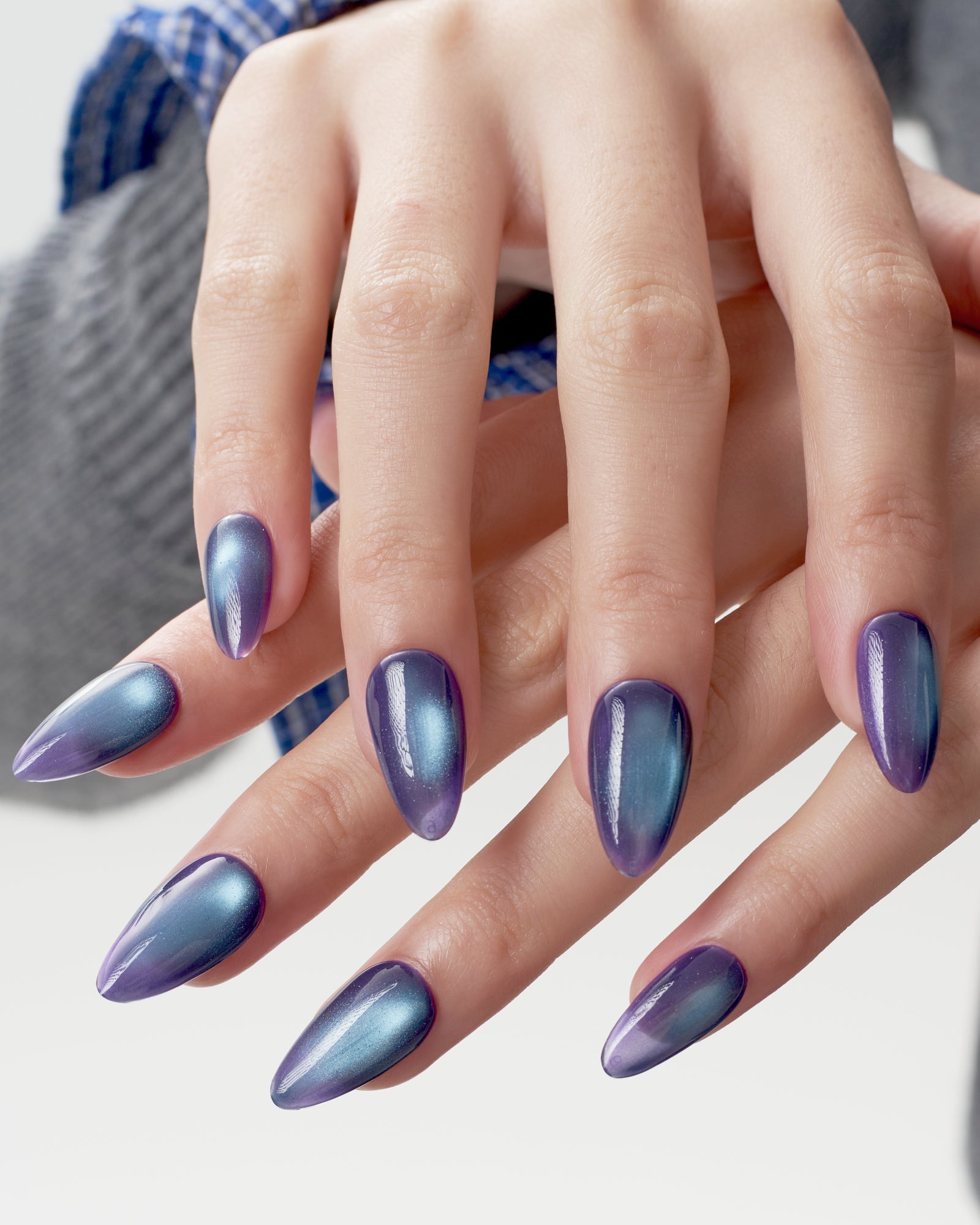Cat Eye/Celestial Blink(Handmade)|manicure|cat eye|real nail gel|purple|glossy|almond|medium|solid|daily – Glamermaid Glam