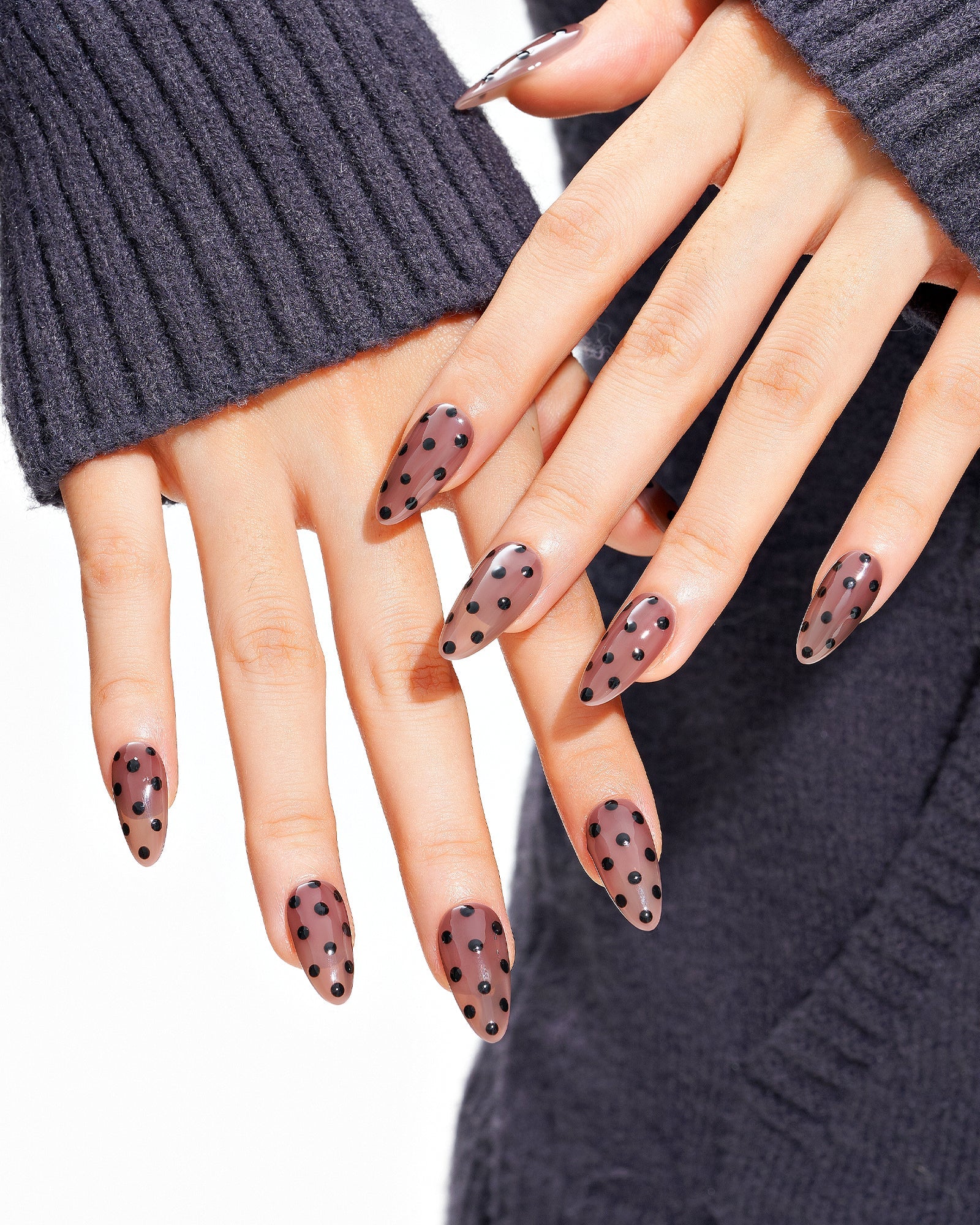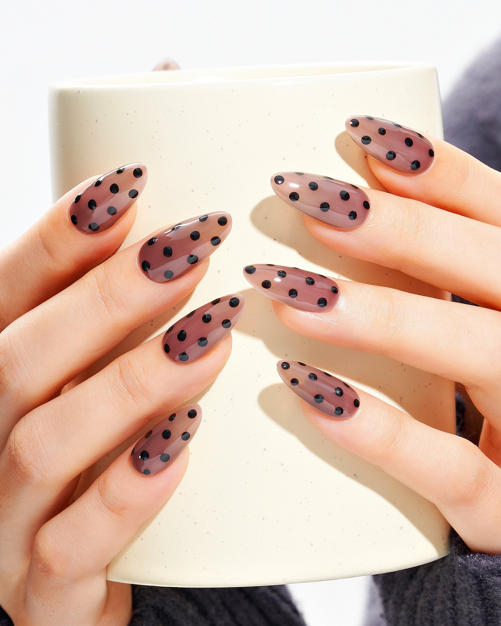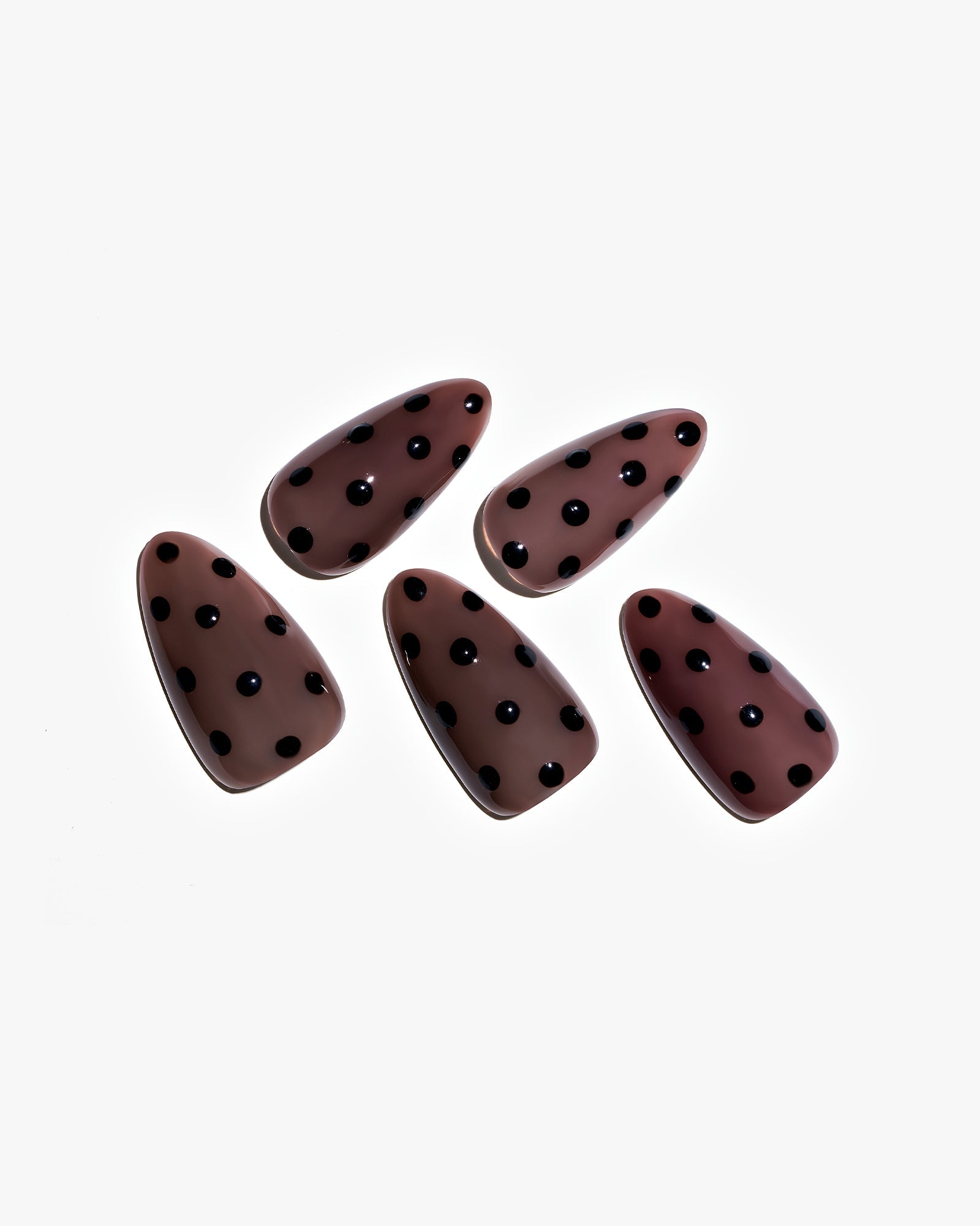 Espresso Sprinkles (Handmade)|manicure|real nail gel|polka dot|fall|brown|black|glossy|almond|medium|cartoon|party – Glamermaid Glam