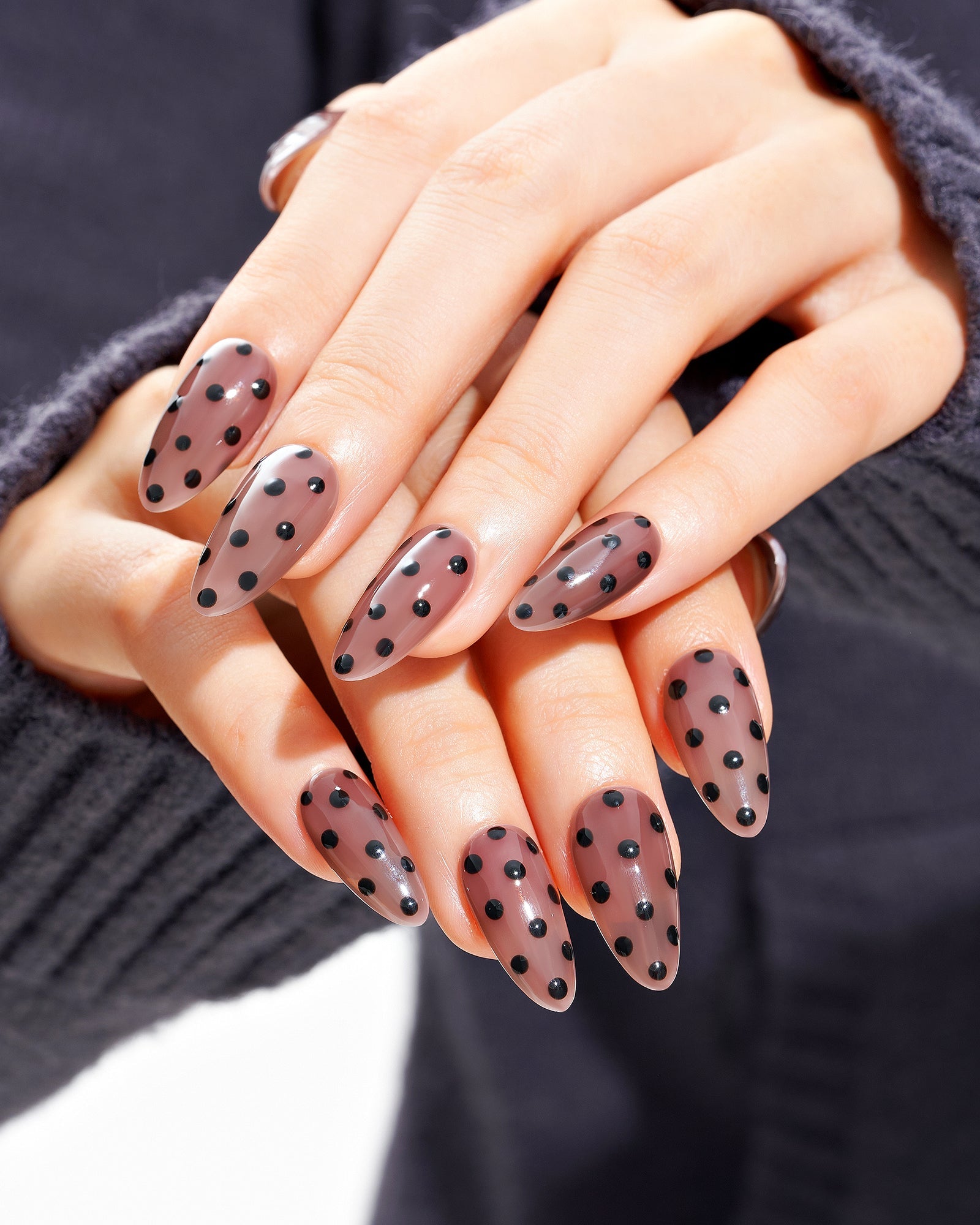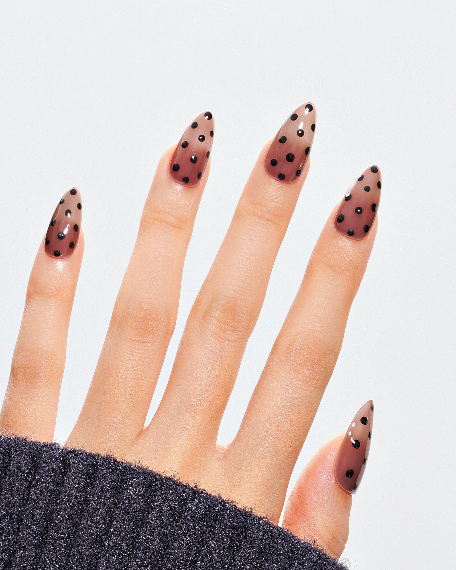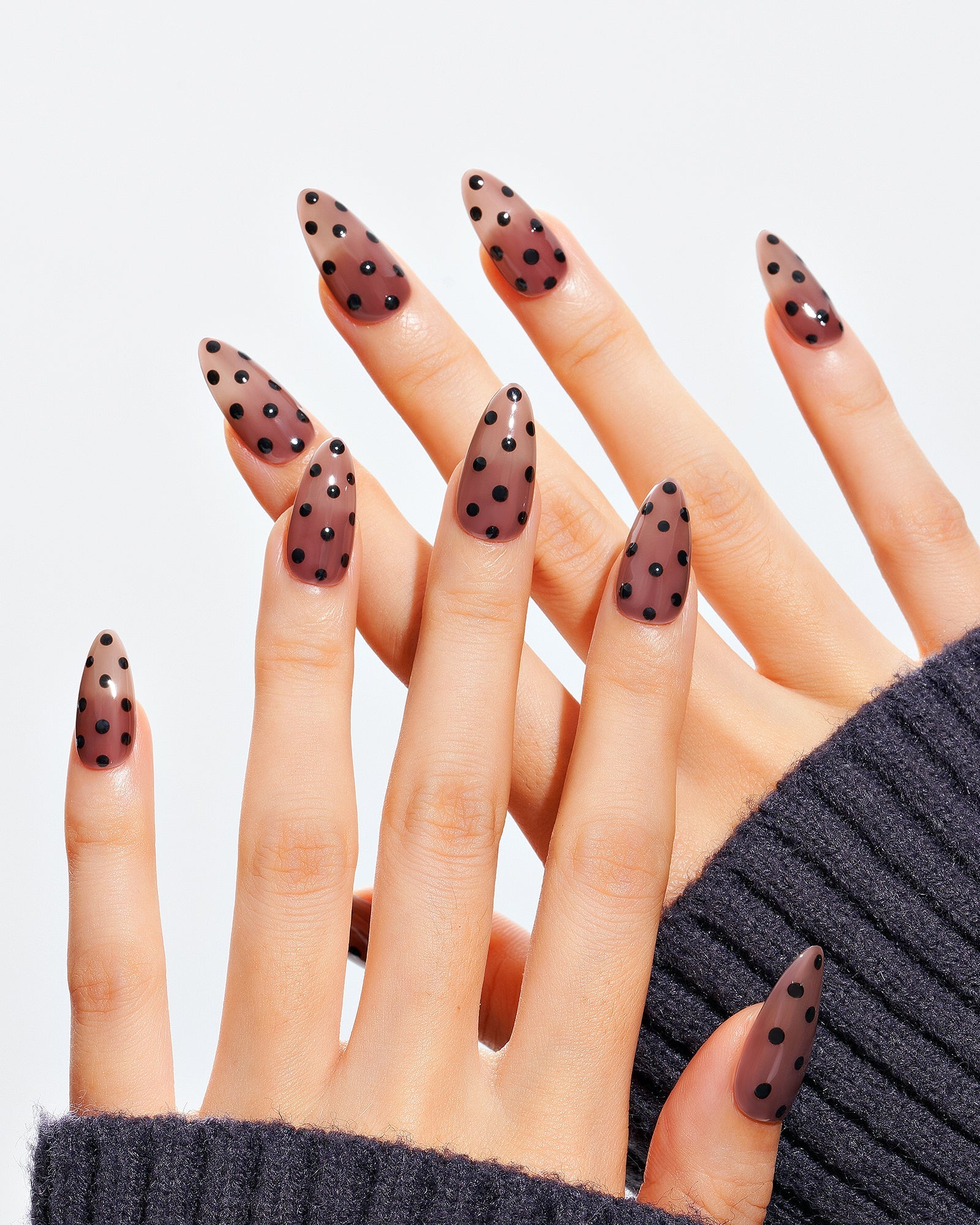 Espresso Sprinkles (Handmade)|manicure|real nail gel|polka dot|fall|brown|black|glossy|almond|medium|cartoon|party – Glamermaid Glam