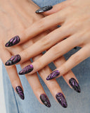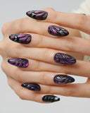 Midnight Pulse(Handmade)|manicure|CSJP|black|purple|glossy|almond|medium|3d art|party – Glamermaid Glam