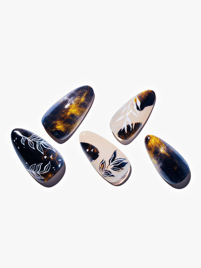 GLAMERMAID-Mani Press On Nails-length: medium-Shape: almond-Basic color: black-Design style: nature-Finish: glossyYou get an added texture that really makes this manicure stand out from the crowd.