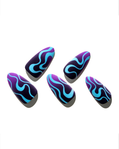 GLAMERMAID-Mani Press On Nails-Length: medium-Shape: almond-Basic color: blue-Design style: line-Finish: matteYou get an added texture that really makes this manicure stand out from the crowd.