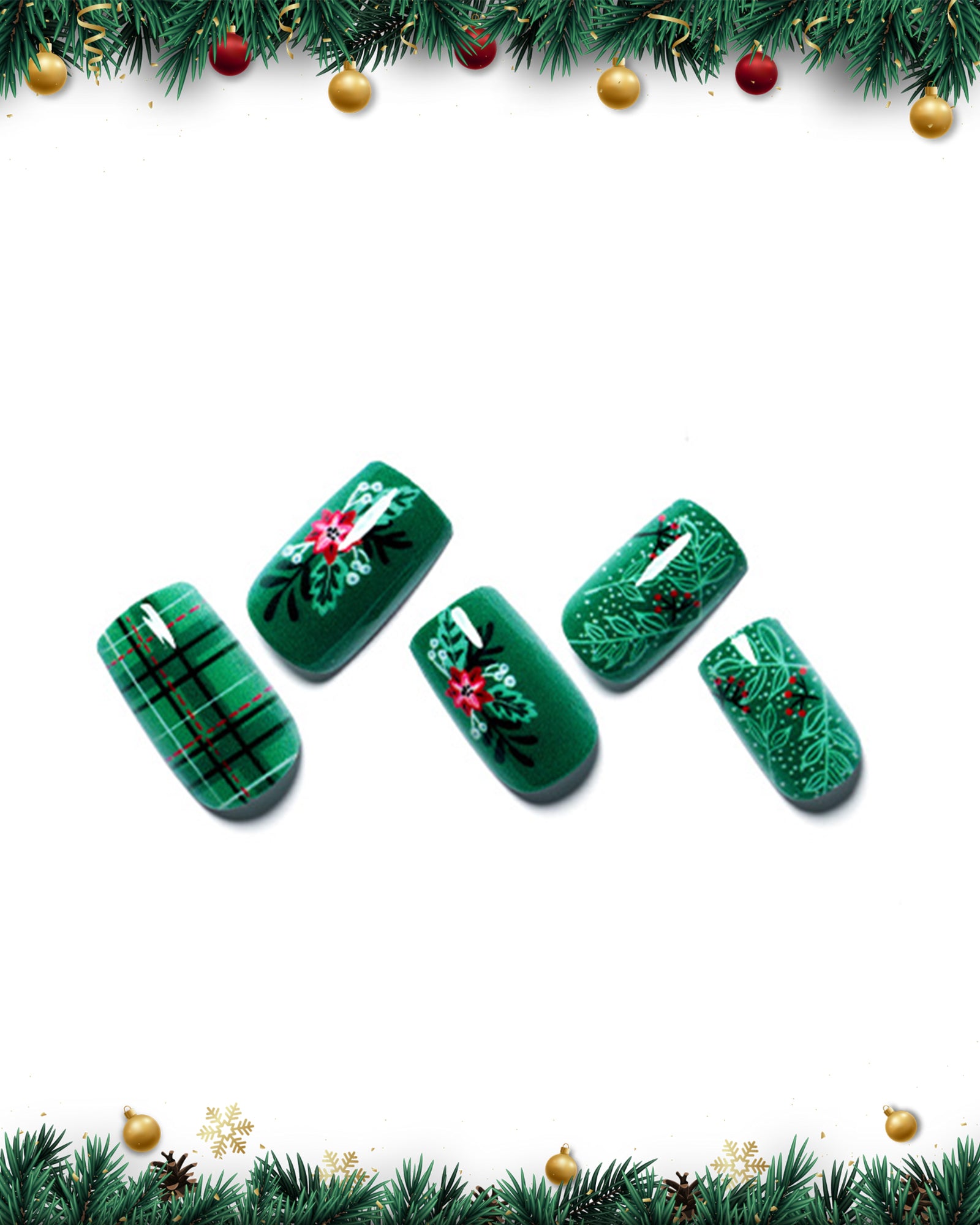 Christmas Tree / Square|Presson nails|christmas|green|red|design|glossy|square|medium|party|grid – Glamermaid Glam