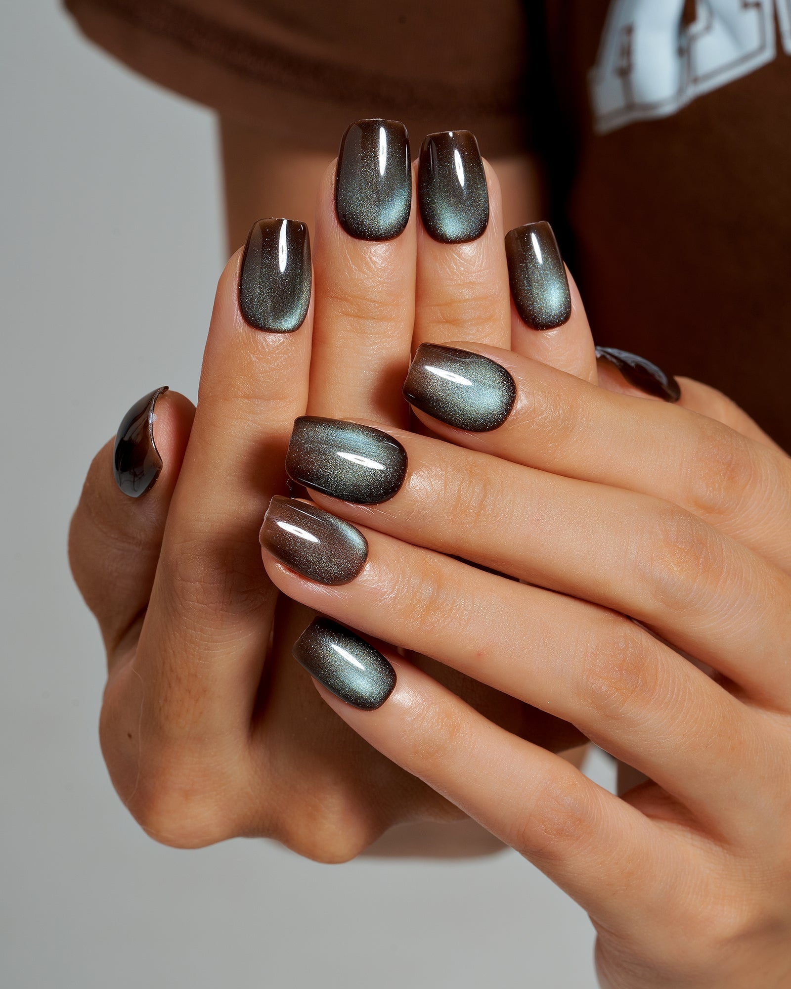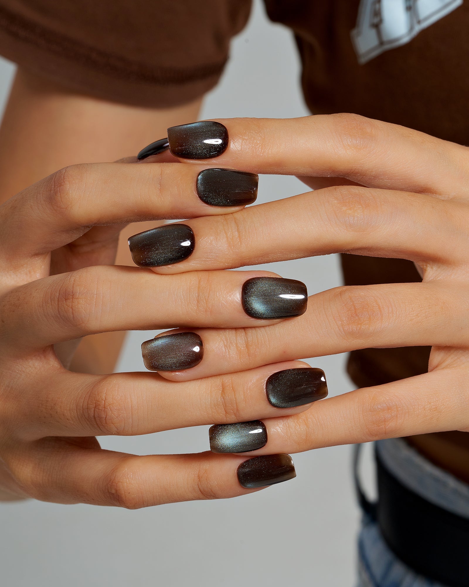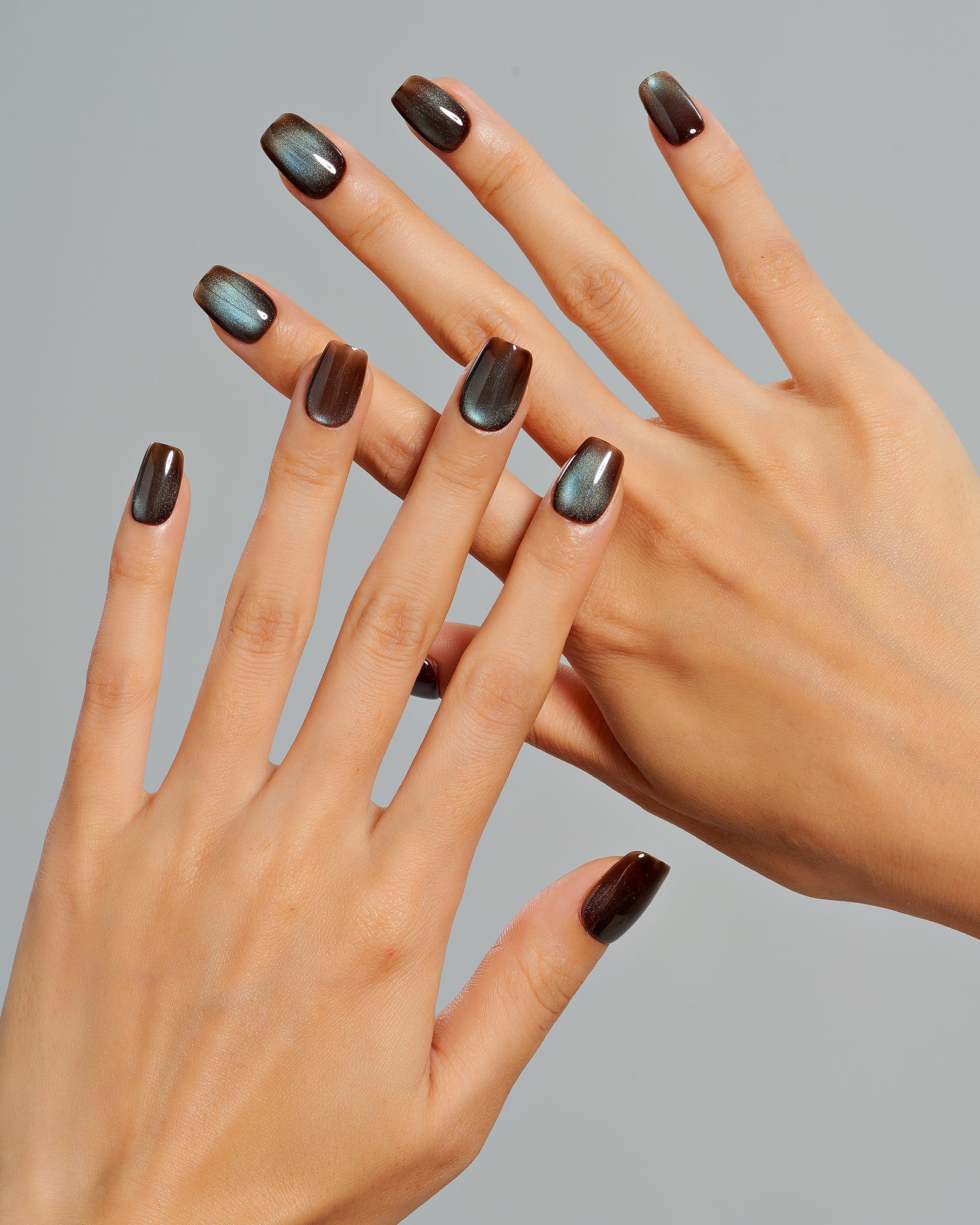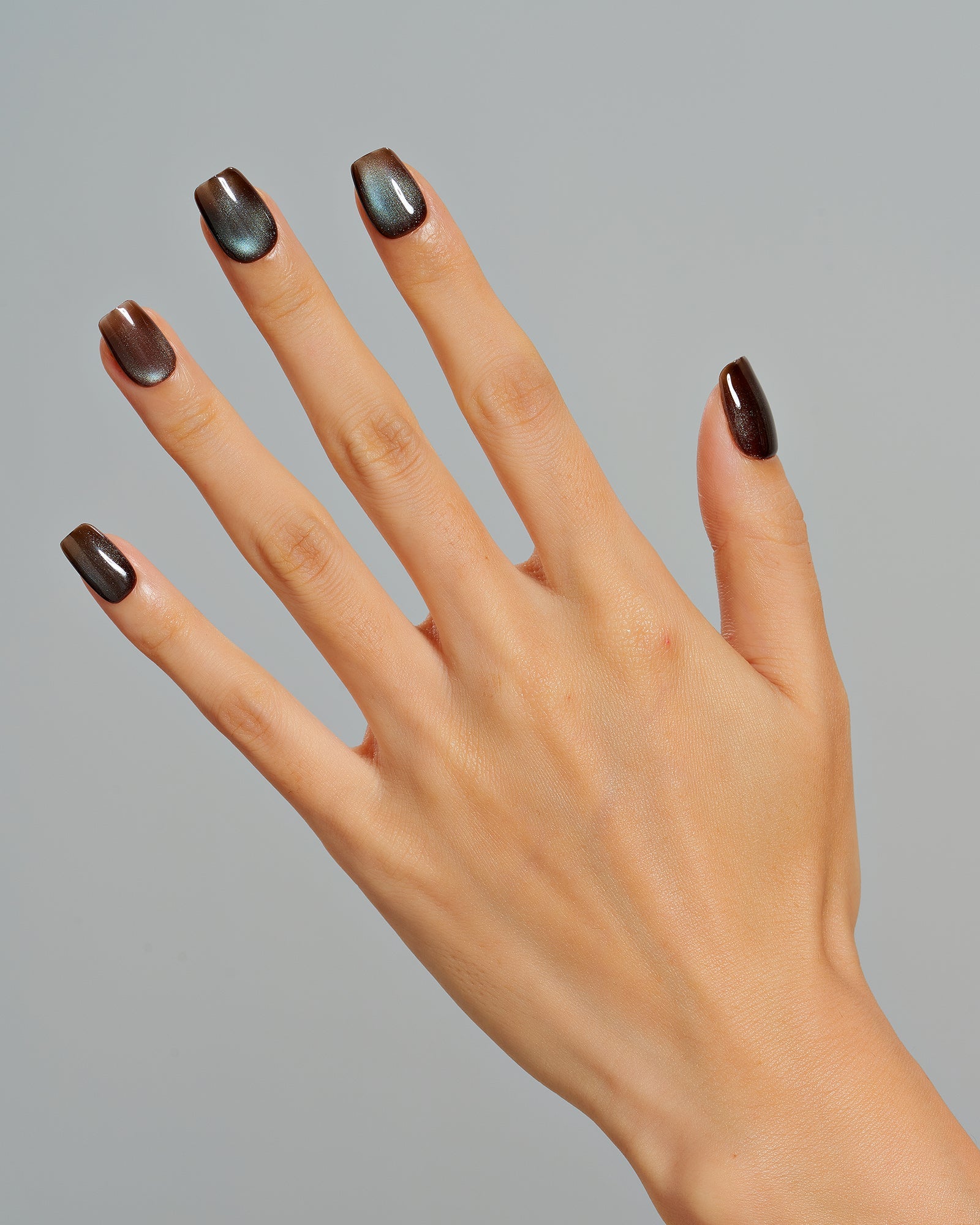 Cat Eye / Espresso Shot (Handmade)|manicure|cat eye|real nail gel|fall|brown|glossy|square|short|solid|work – Glamermaid Glam