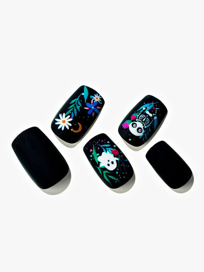 GLAMERMAID-Mani Press On Nails-Length: short-Shape: squoval-Basic color: black-Design style: nature-Finish: matteYou get an added texture that really makes this manicure stand out from the crowd.