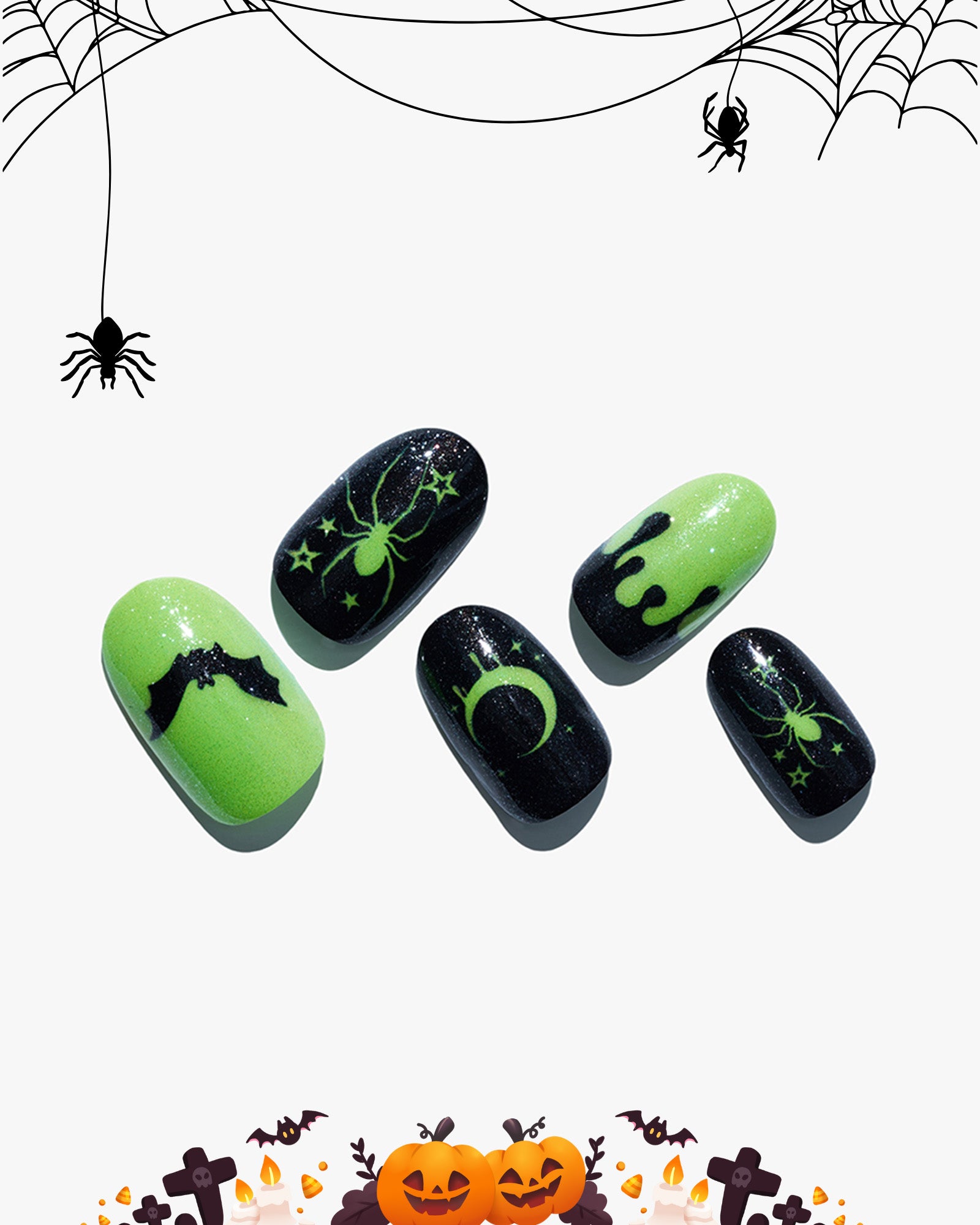 Mystic Duo/ Oval|manicure|moon&star|spider|halloween|bat|black|green|fine glitter|oval|medium|nature|daily – Glamermaid Glam