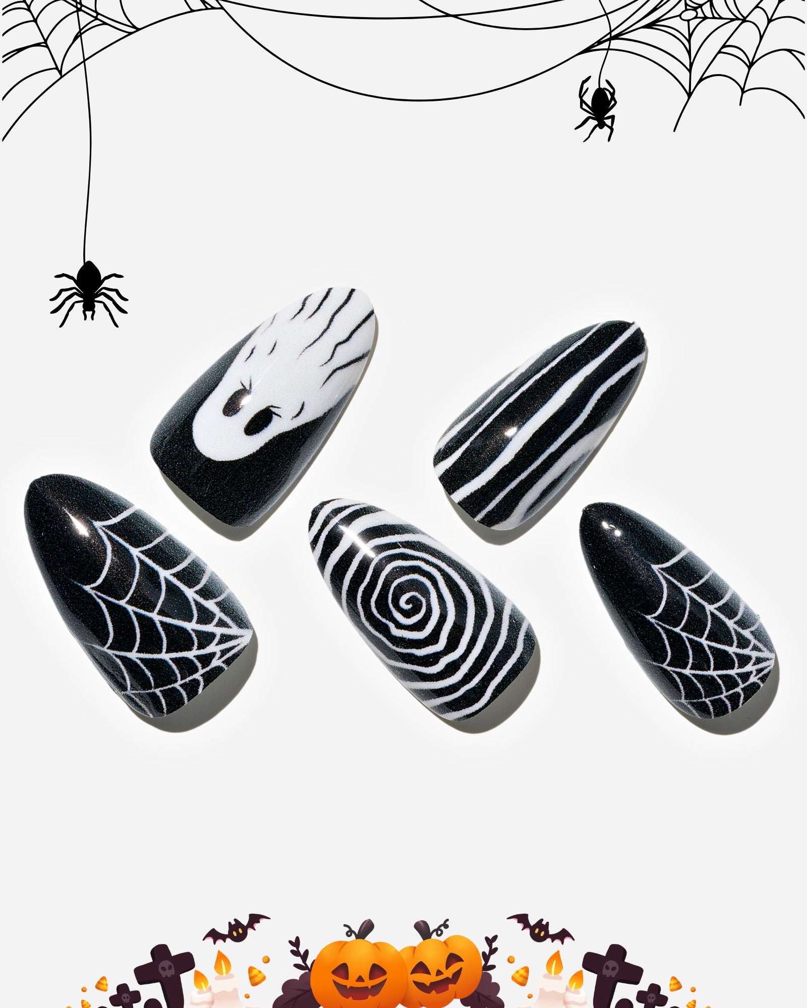 Stare At|manicure|halloween|ghost|black|white|glossy|almond|medium|cartoon|party – Glamermaid Glam