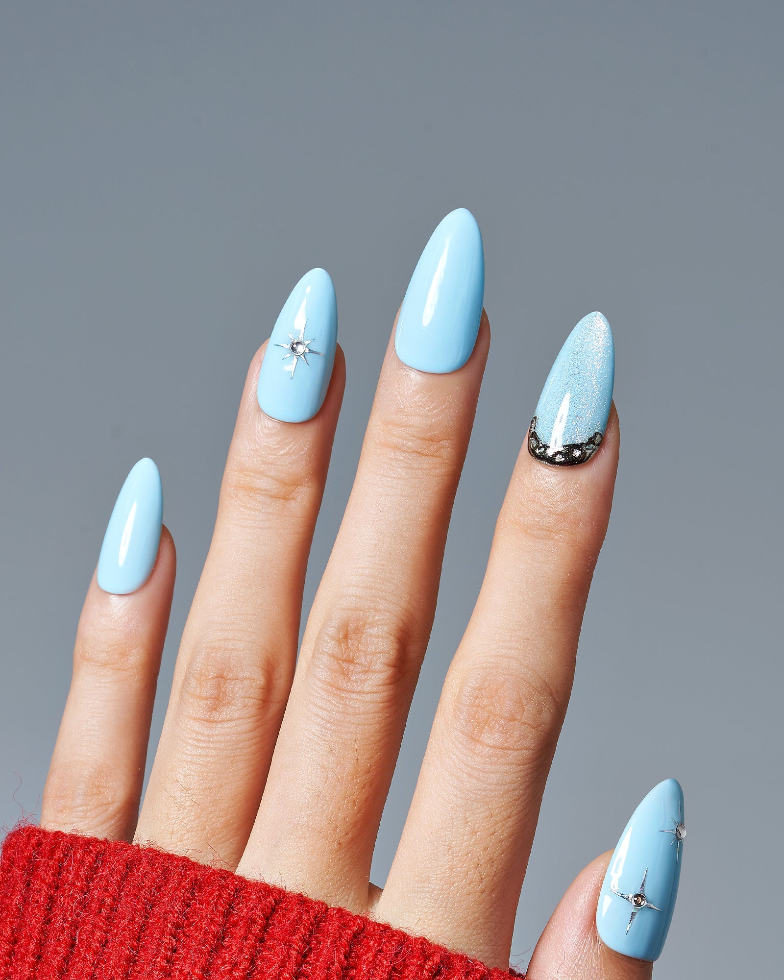 Antarctic Night Sky (Handmade)|manicure|real nail gel|cat eye|star|blue|glossy|almond|medium|3d art|daily – Glamermaid Glam
