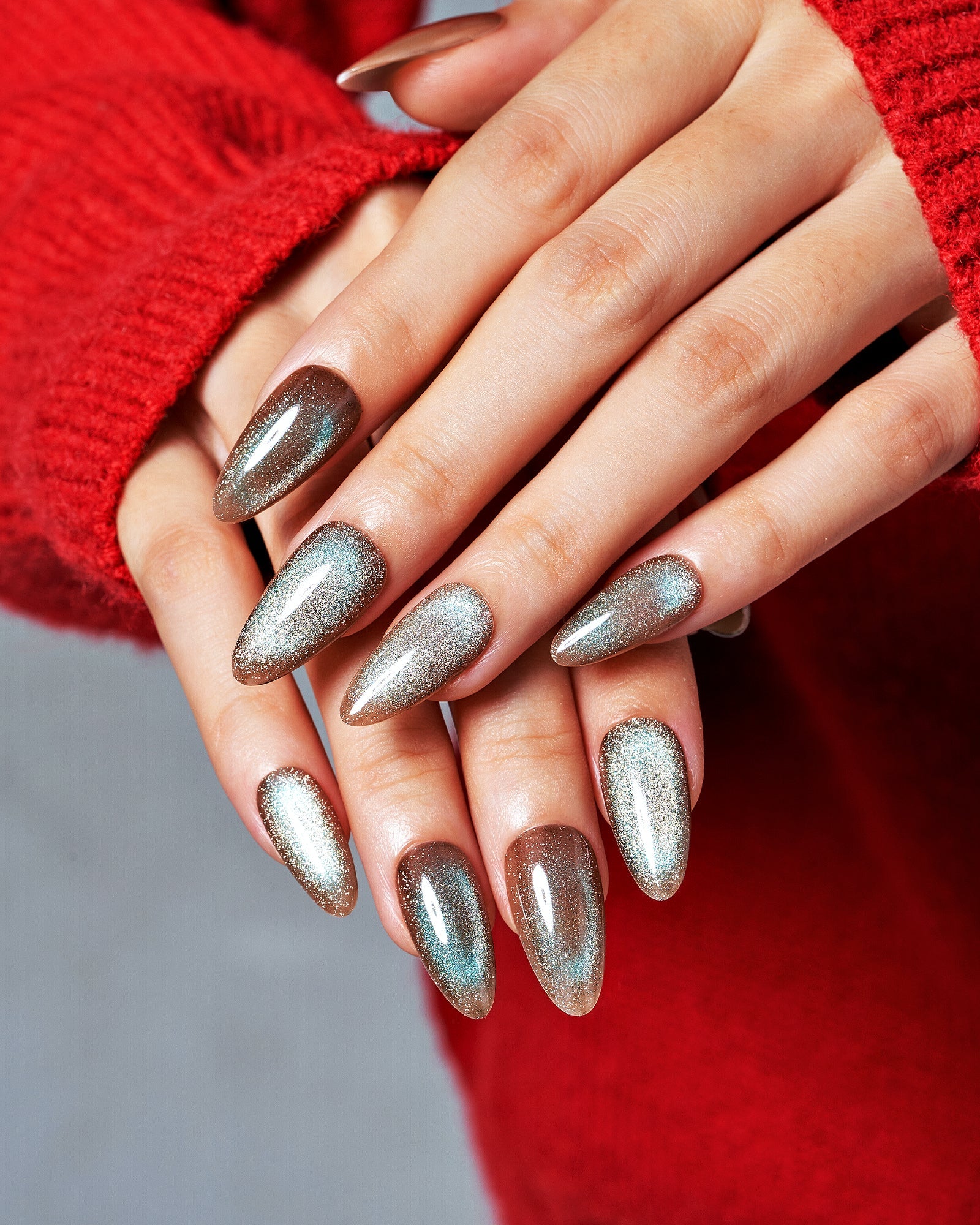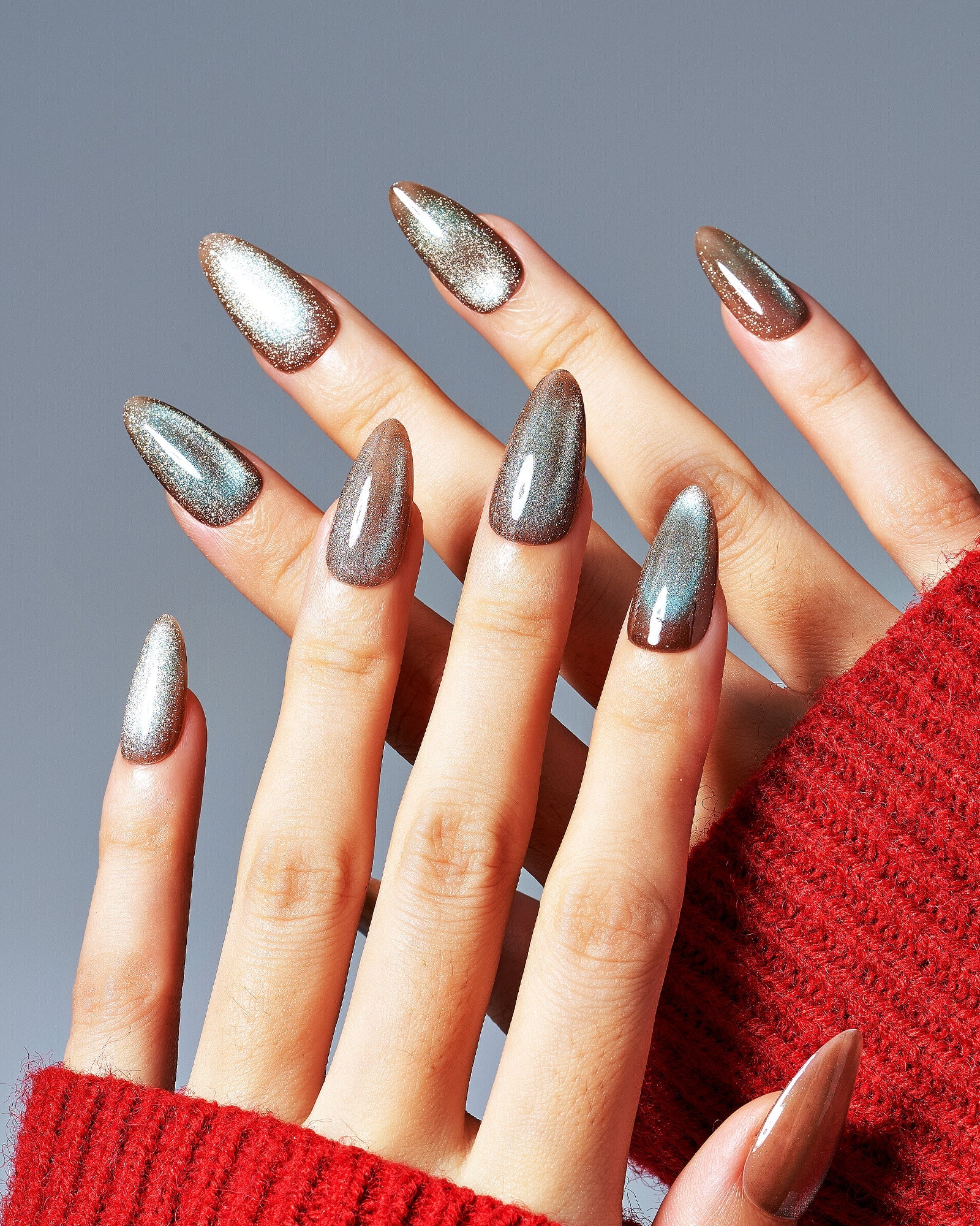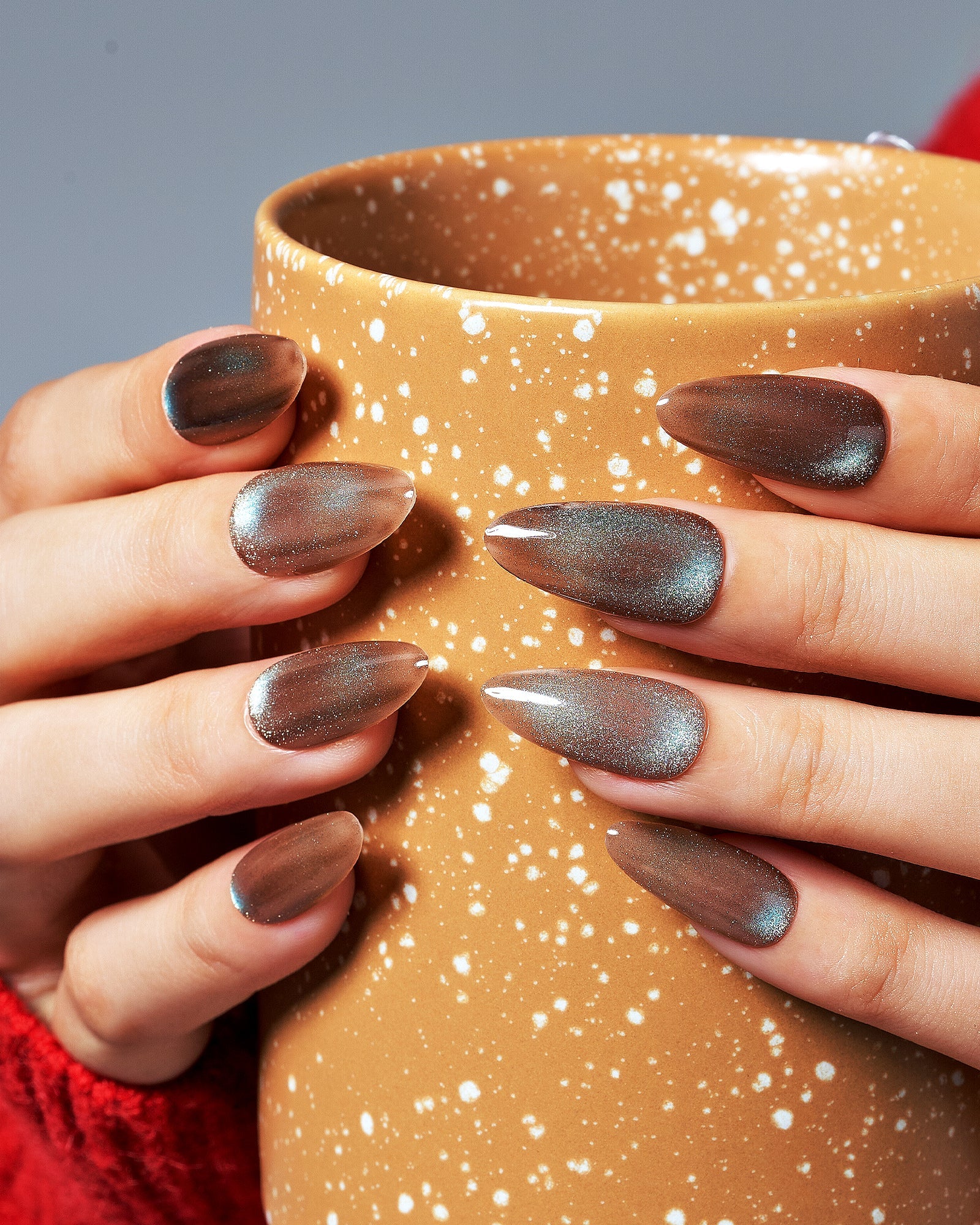 Cat Eye/ Sky Ruins (Handmade)|manicure|real nail gel|cat eye|brown|glossy|almond|medium|solid|daily – Glamermaid Glam
