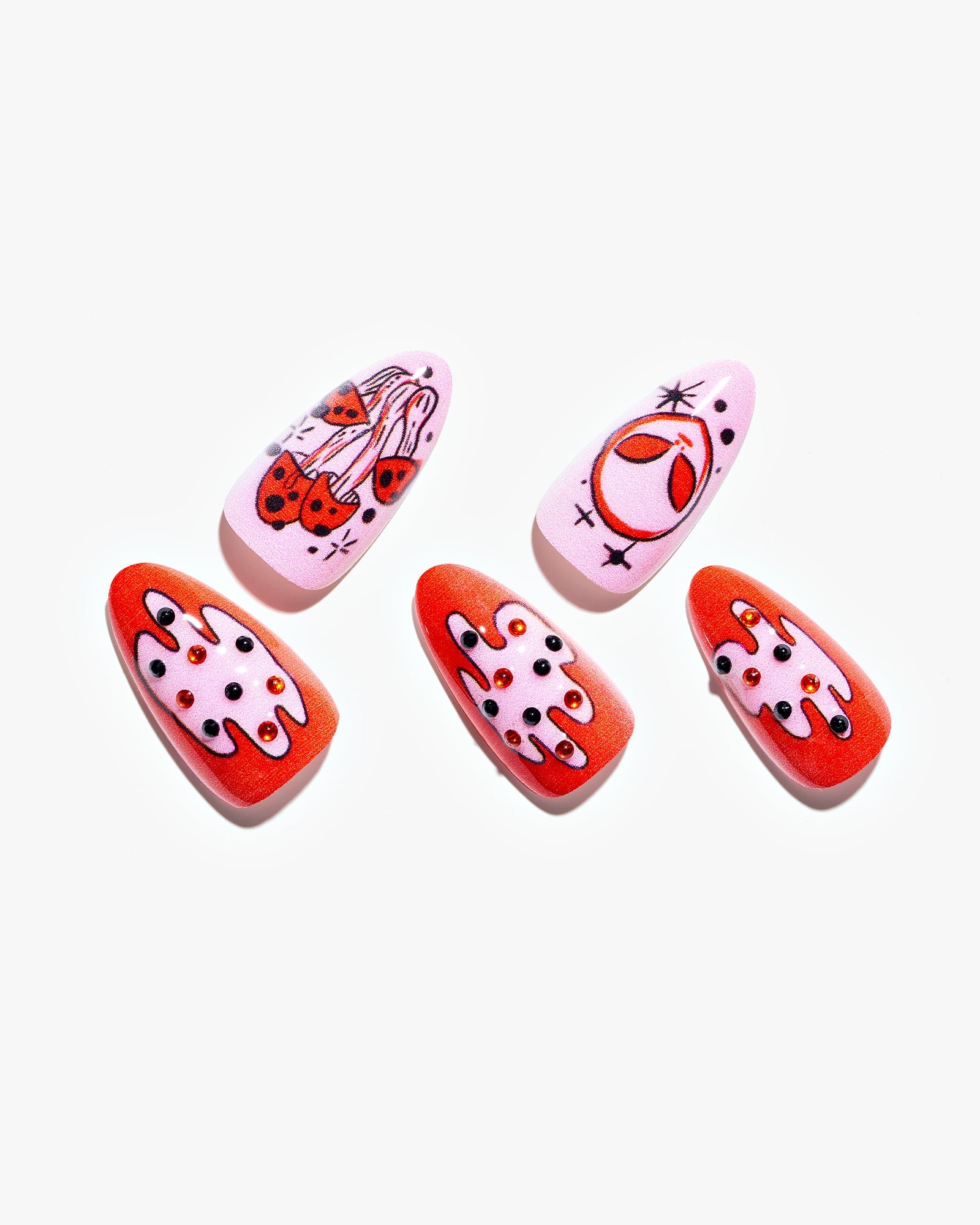 Heartbeat Call (Handmade)|manicure|valentine|mushroon|diamond|star|real nail gel|red|pink|glossy|almond|medium|3d art|daily – Glamermaid Glam