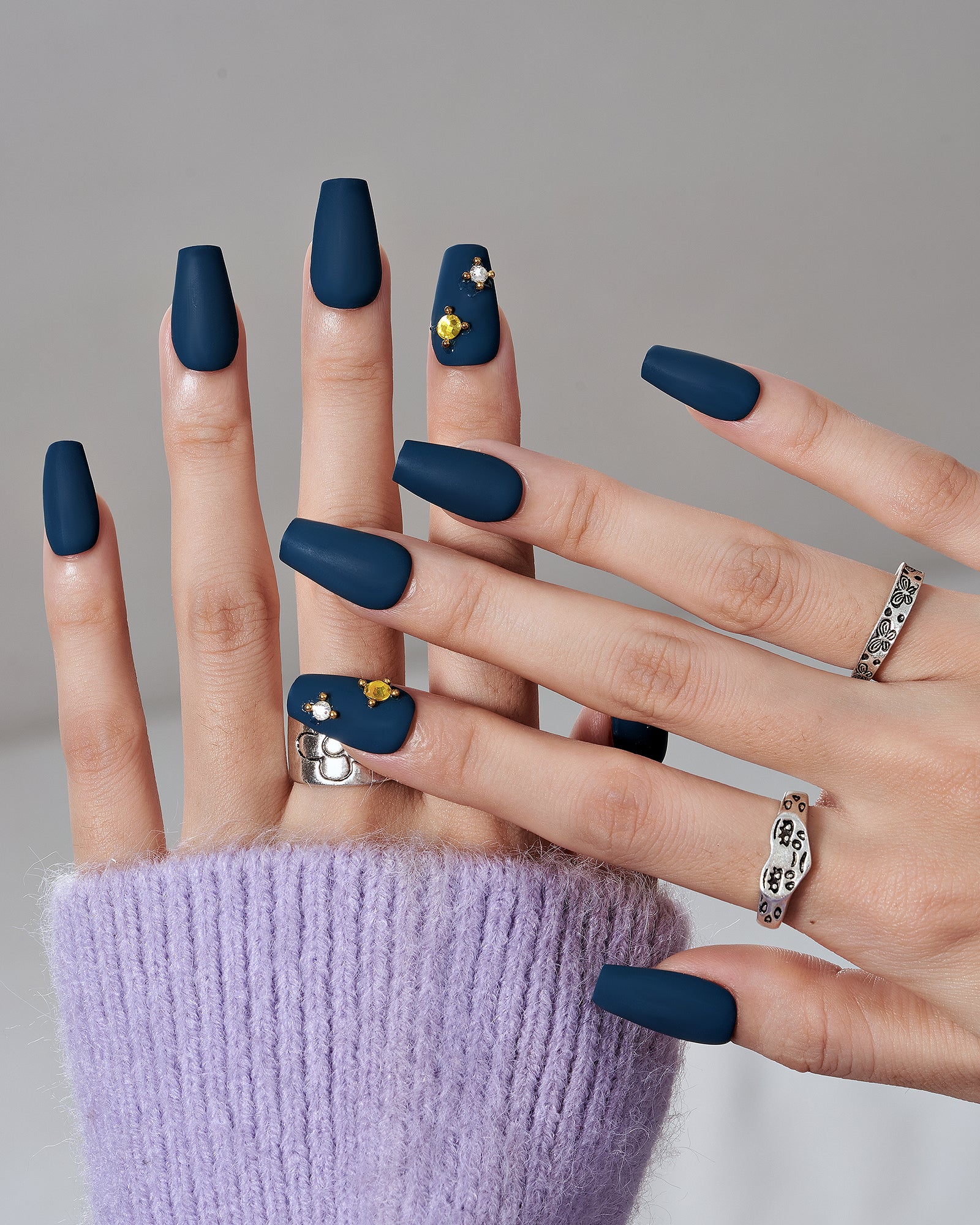 Lyons Blue (Handmade)|manicure|real nail gel|solid|blue|matte|coffin|short|3d art|work – Glamermaid Glam