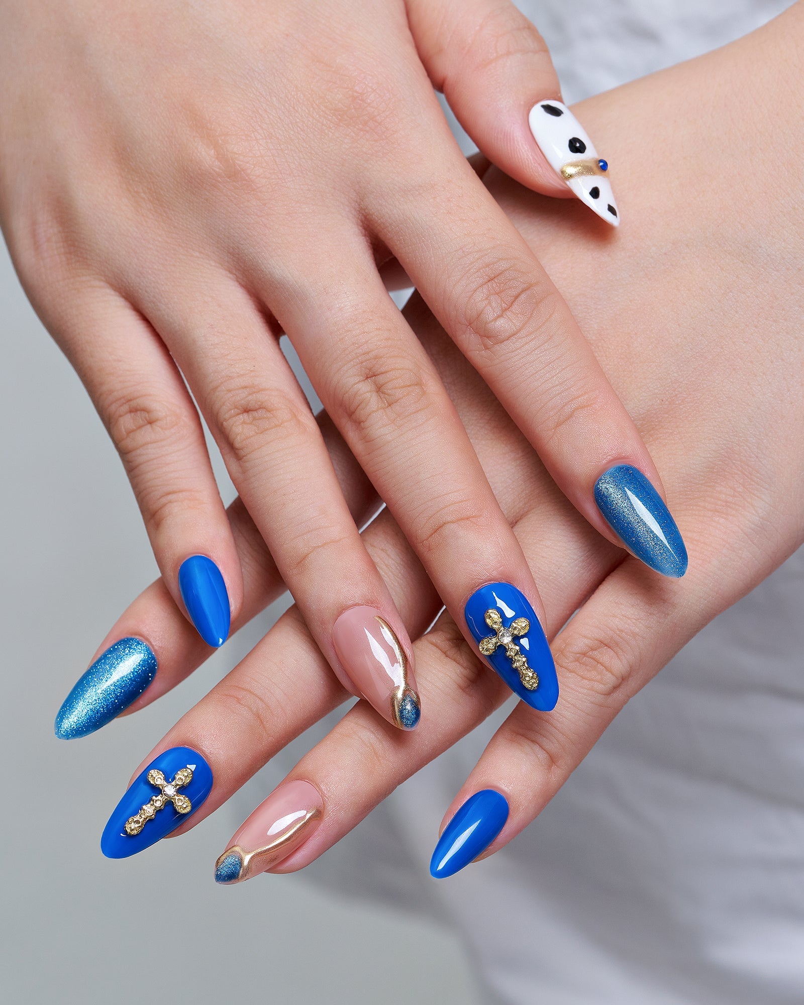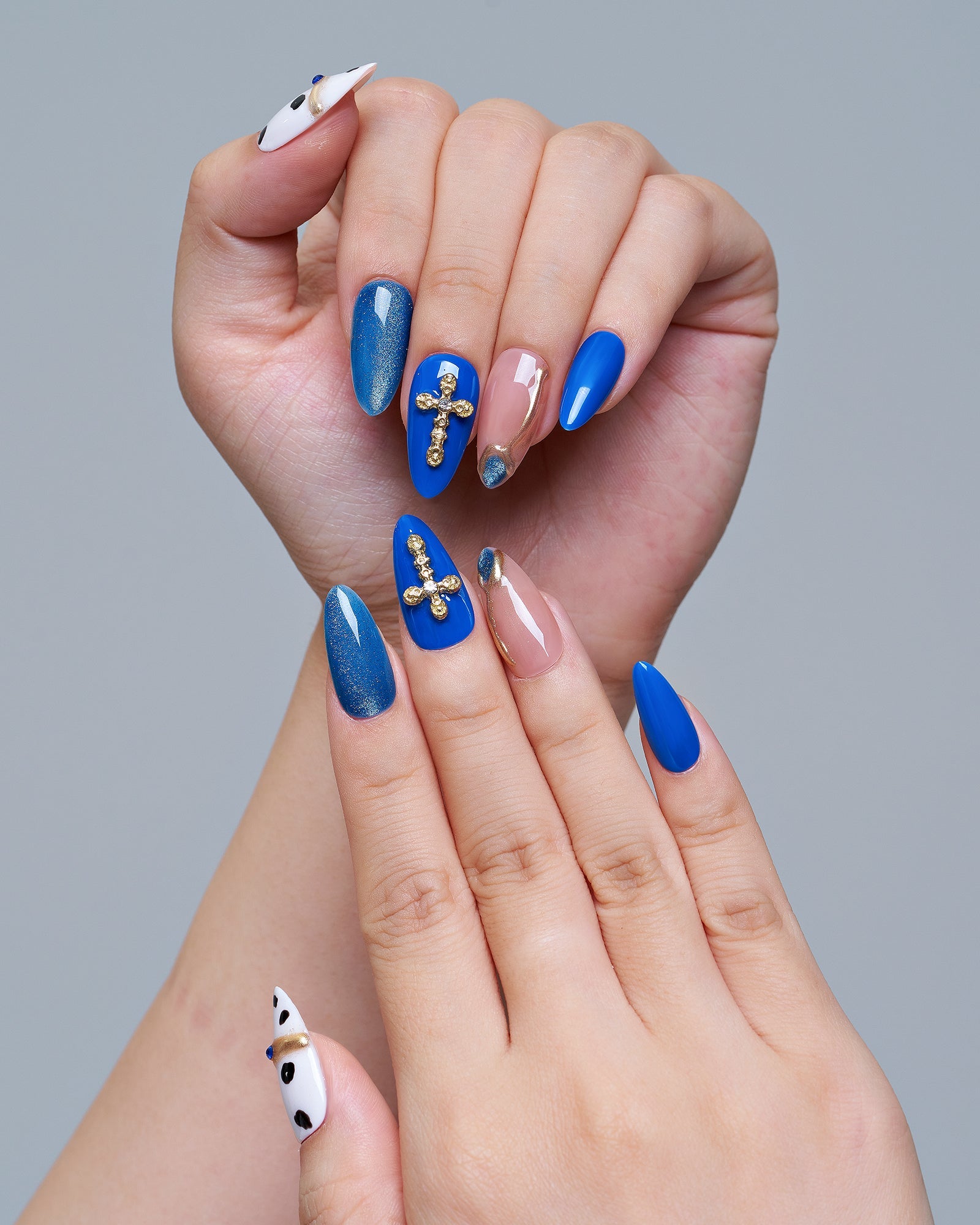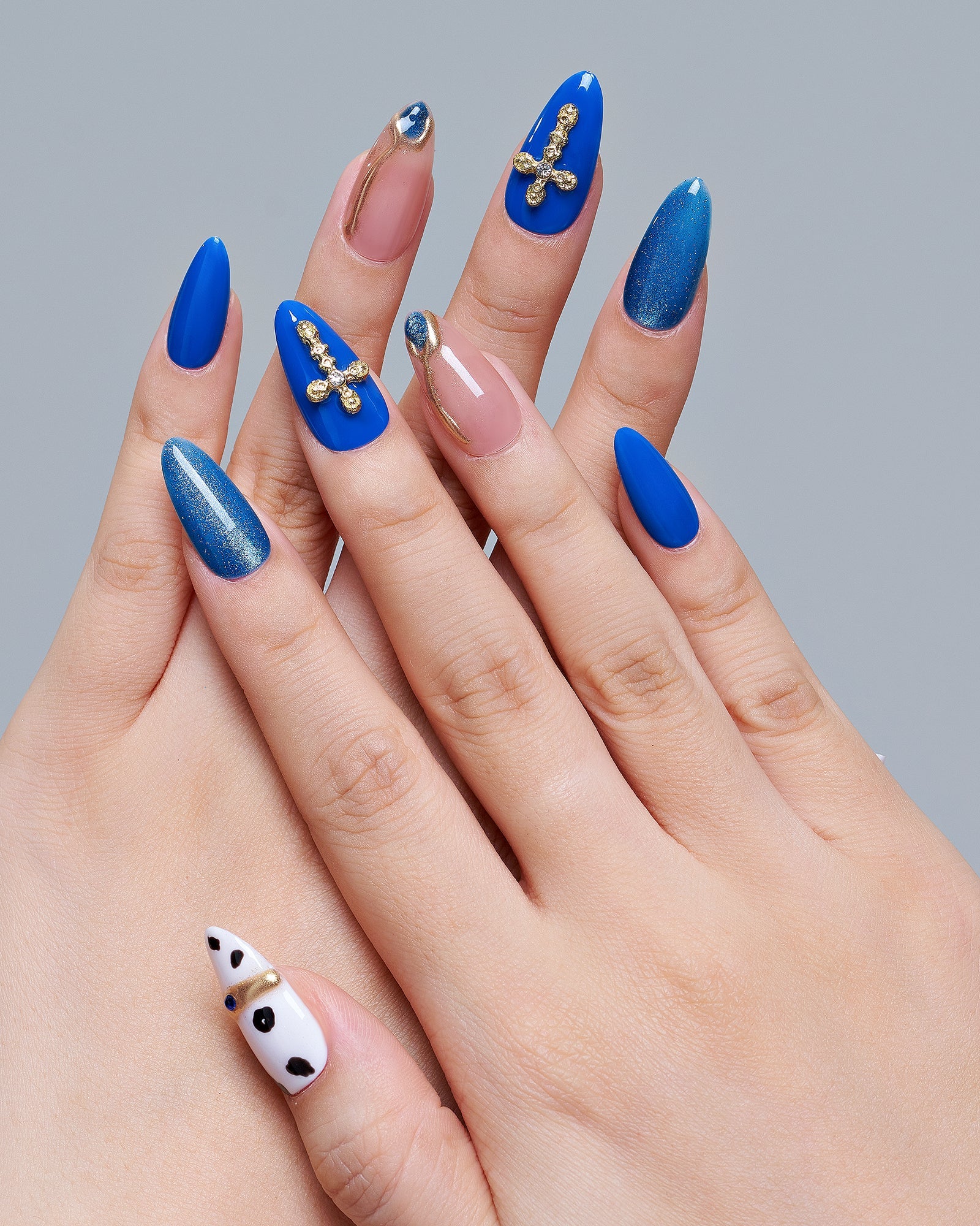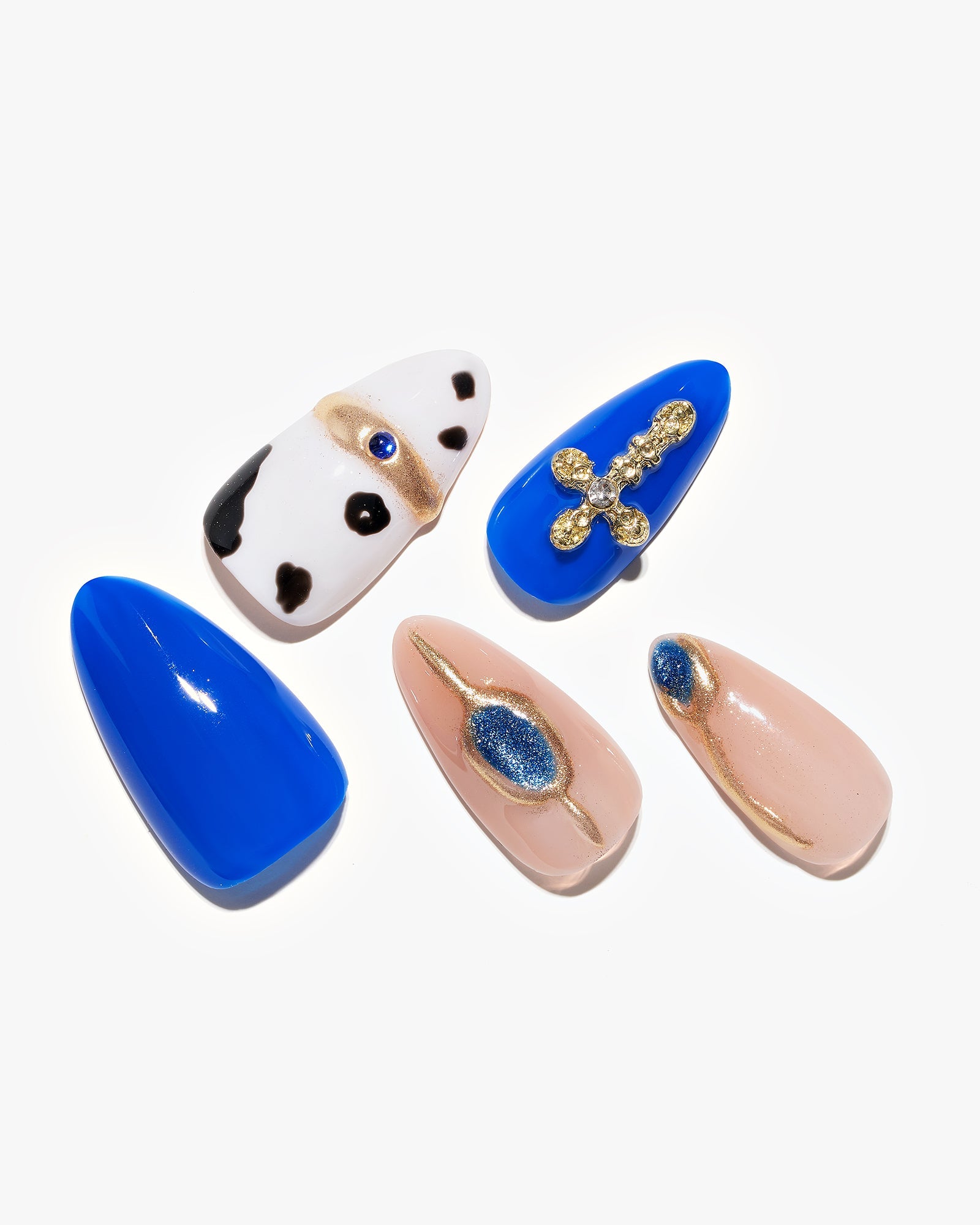 Sledding Fun (Handmade)|manicure|real nail gel|cowprint|jump color|blue|nude|glossy|almond|medium|3d art|daily – Glamermaid Glam