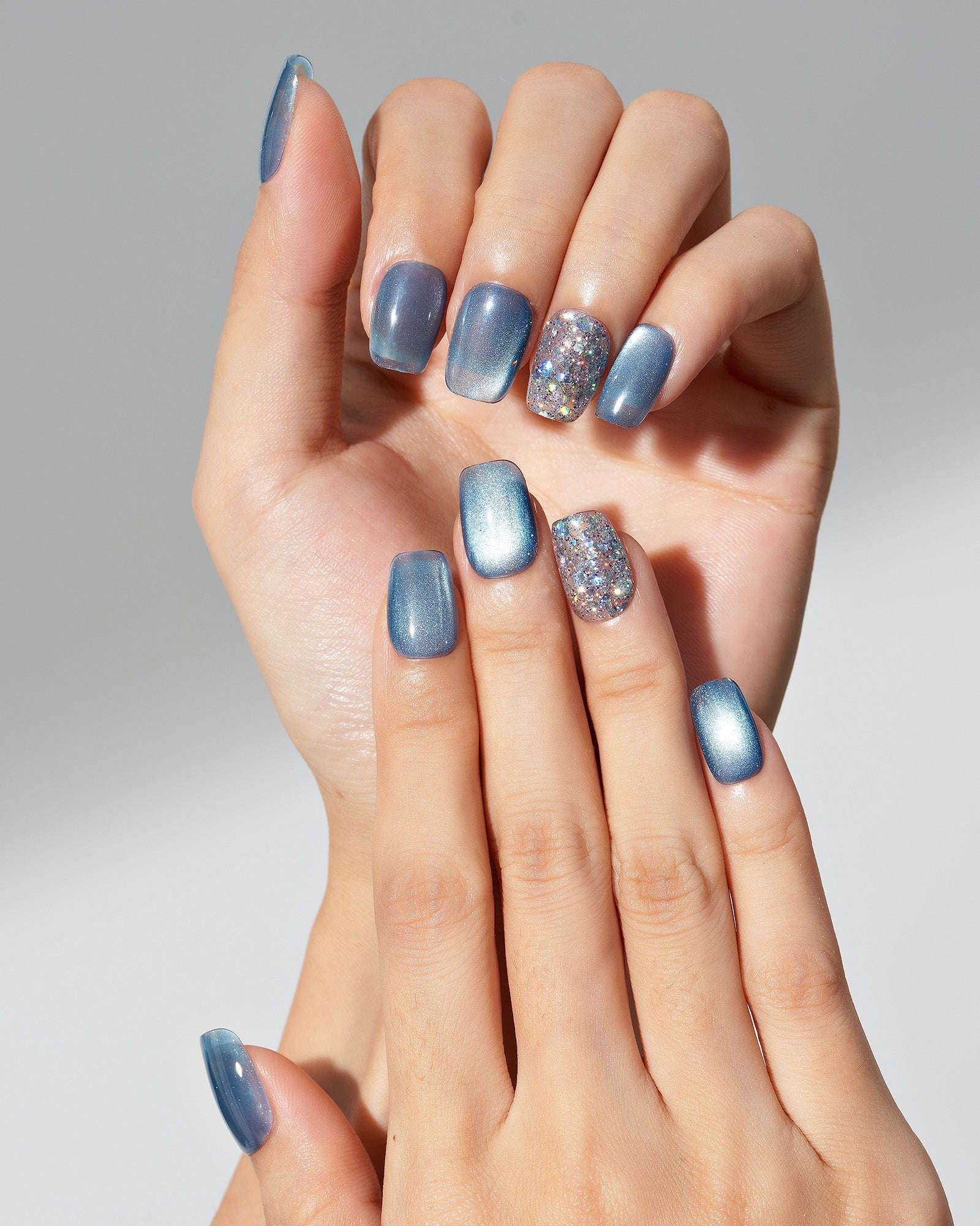 Cat Eye / Garden Sky (Handmade)|manicure|real nail gel|jump color|cat eye|blue|glossy|square|short|solid|work – Glamermaid Glam
