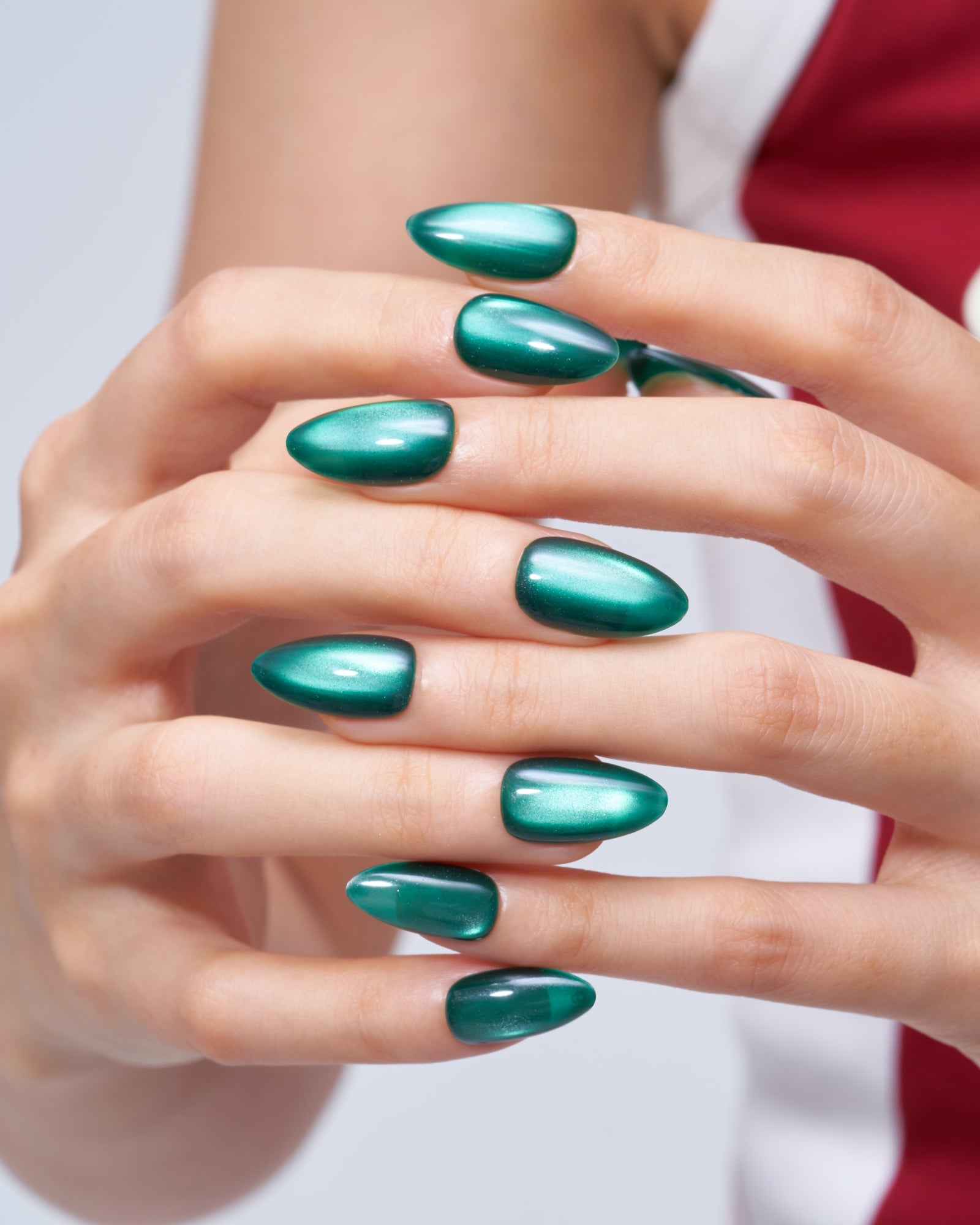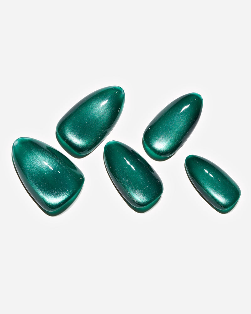 Lush Oasis (Handmade)|manicure|real nail gel|cat eye|smoothie|summer|green|glossy|almond|short|solid|daily – Glamermaid Glam
