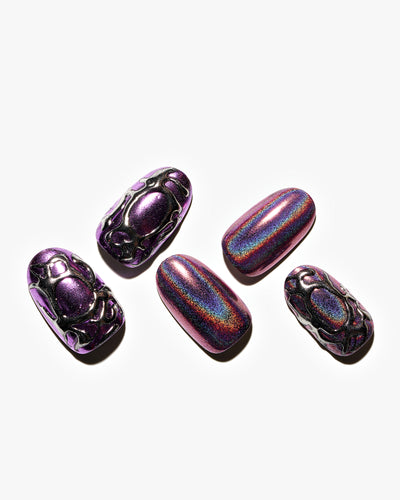 GLAMERMAID-Mani Press On Nails-Length: short-Shape: coffin-Basic color: purple-Design style: 3d art-Finish: glossyYou get an added texture that really makes this manicure stand out from the crowd.