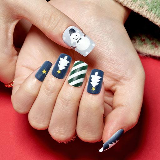 Christmas Snowman /Square|Presson nails|christmas|blue|white|matte|square|medium|vacation|cartoon – Glamermaid Glam