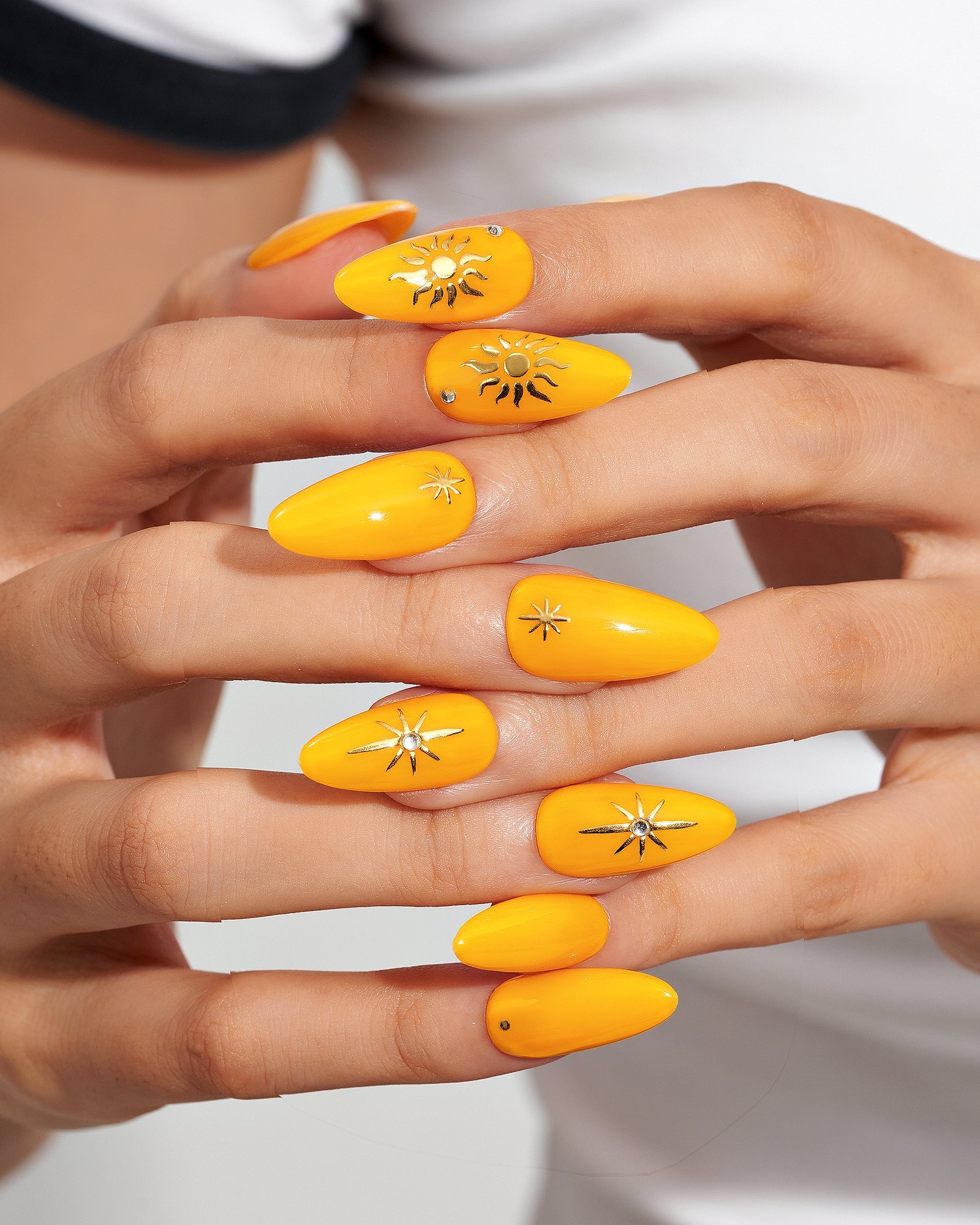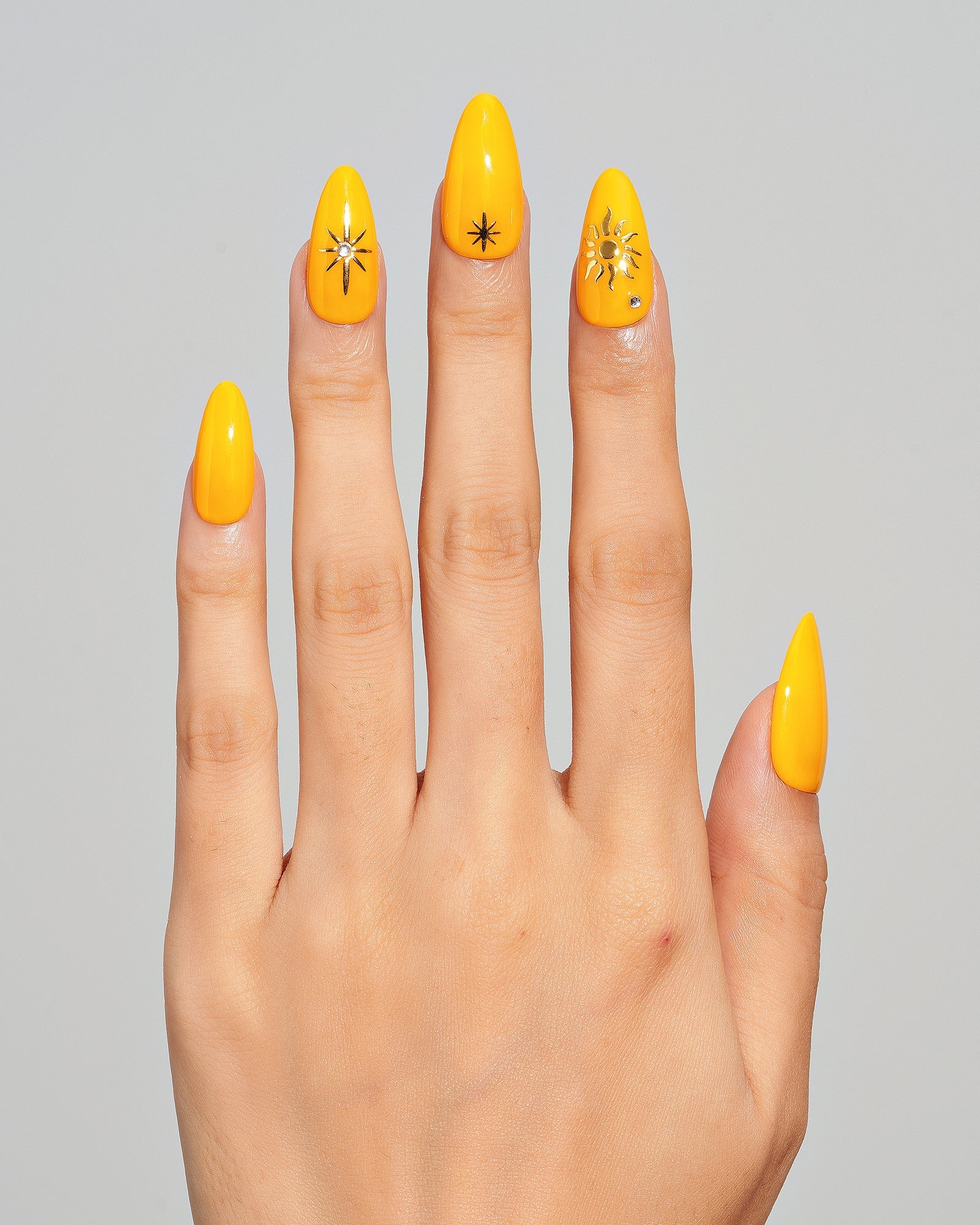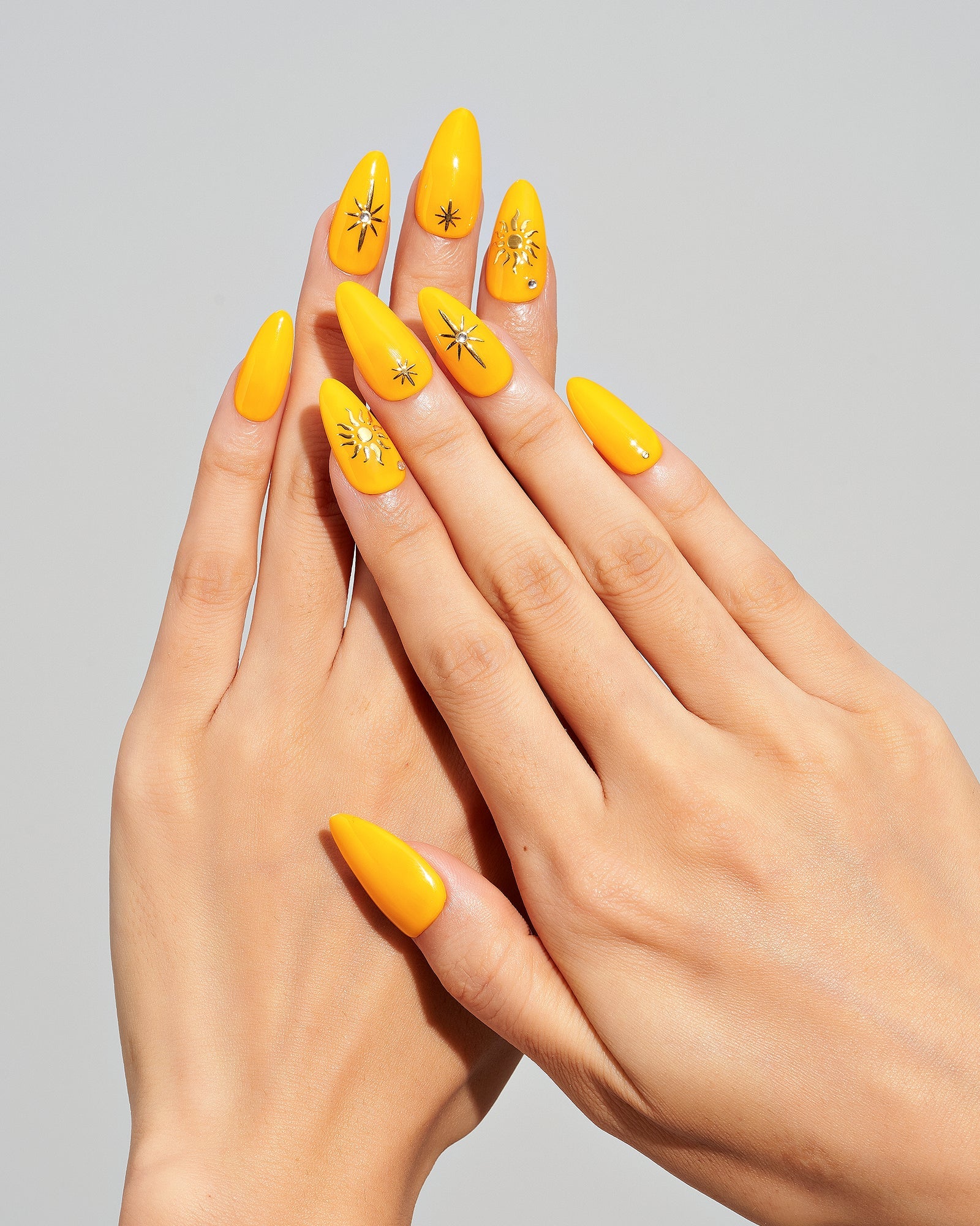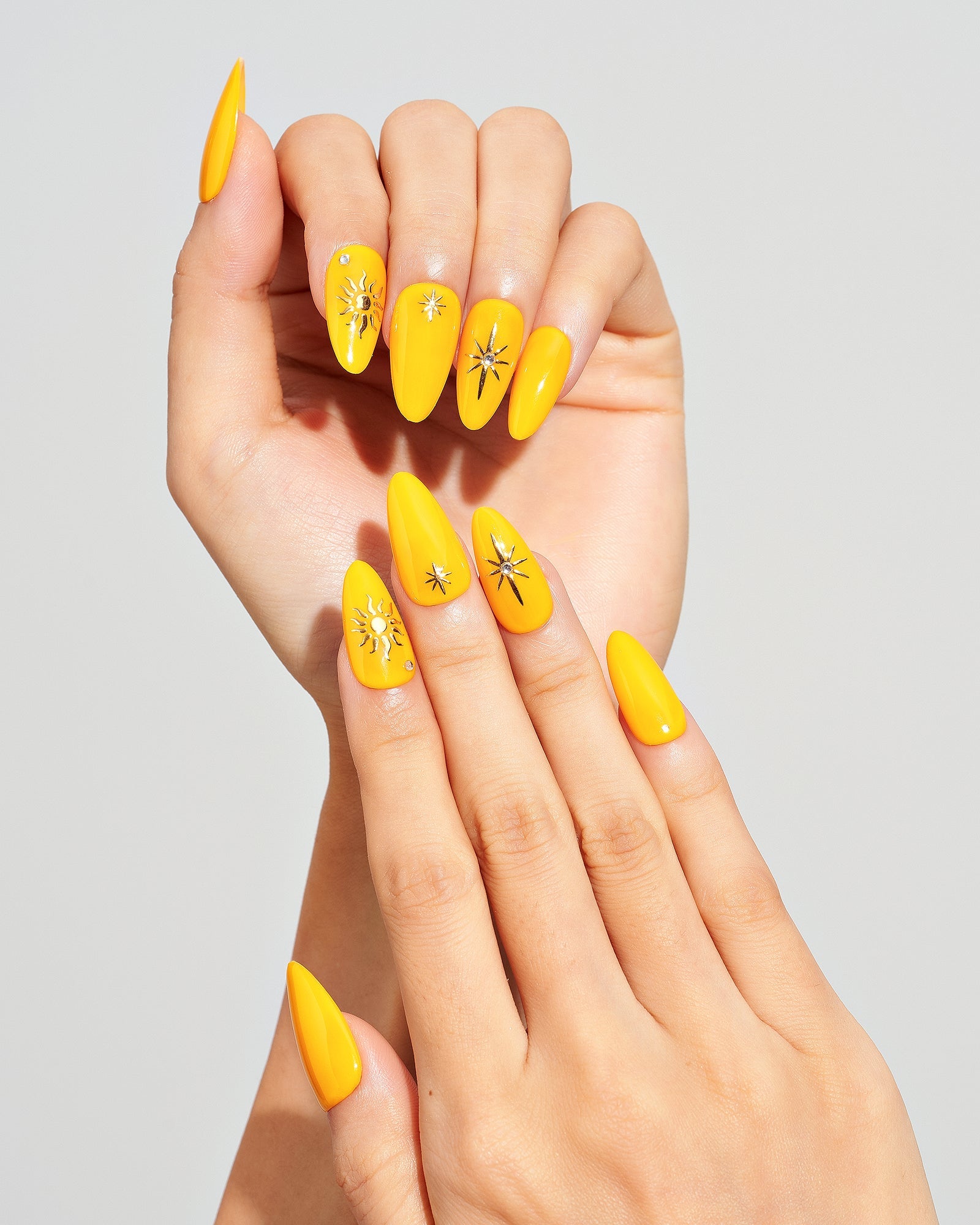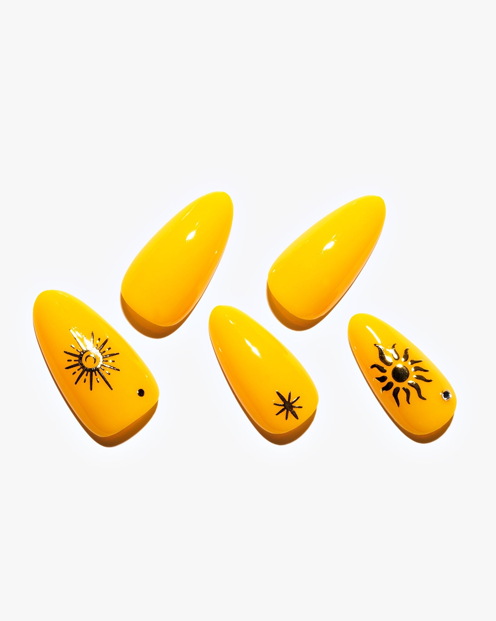 Solar Disk (Handmade)|manicure|real nail gel|moon&star|tarot|fall|yellow|glossy|almond|medium|nature|daily – Glamermaid Glam