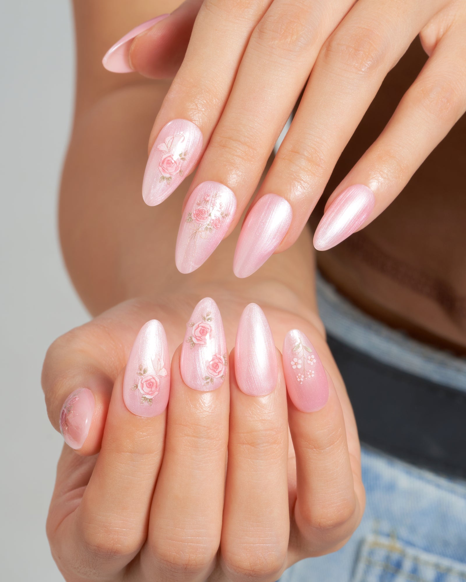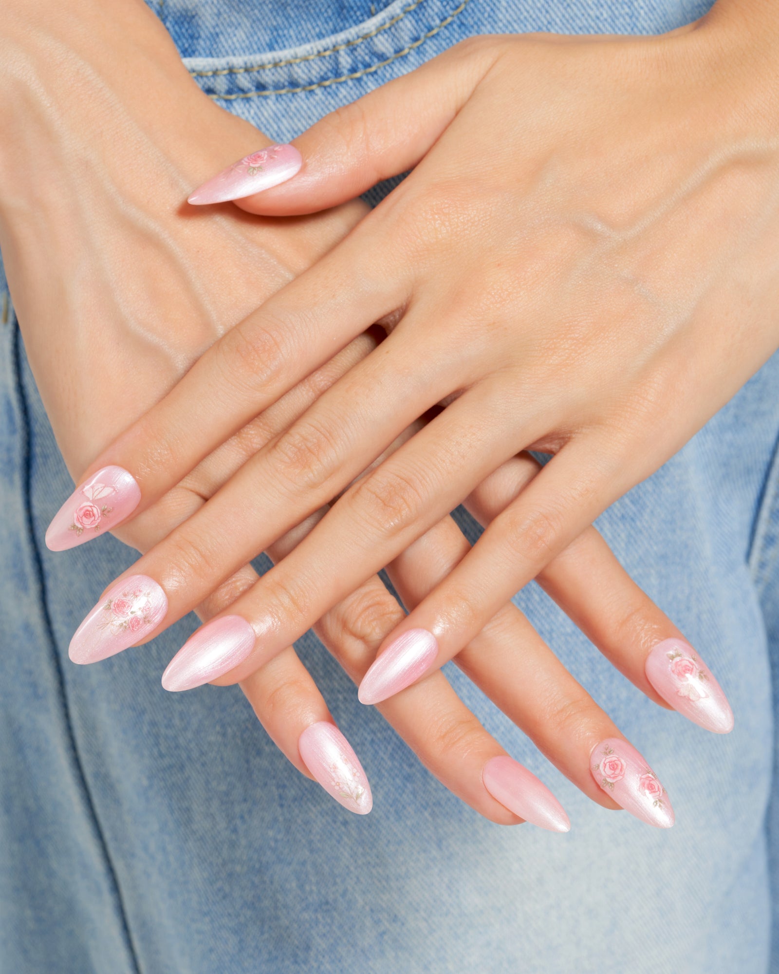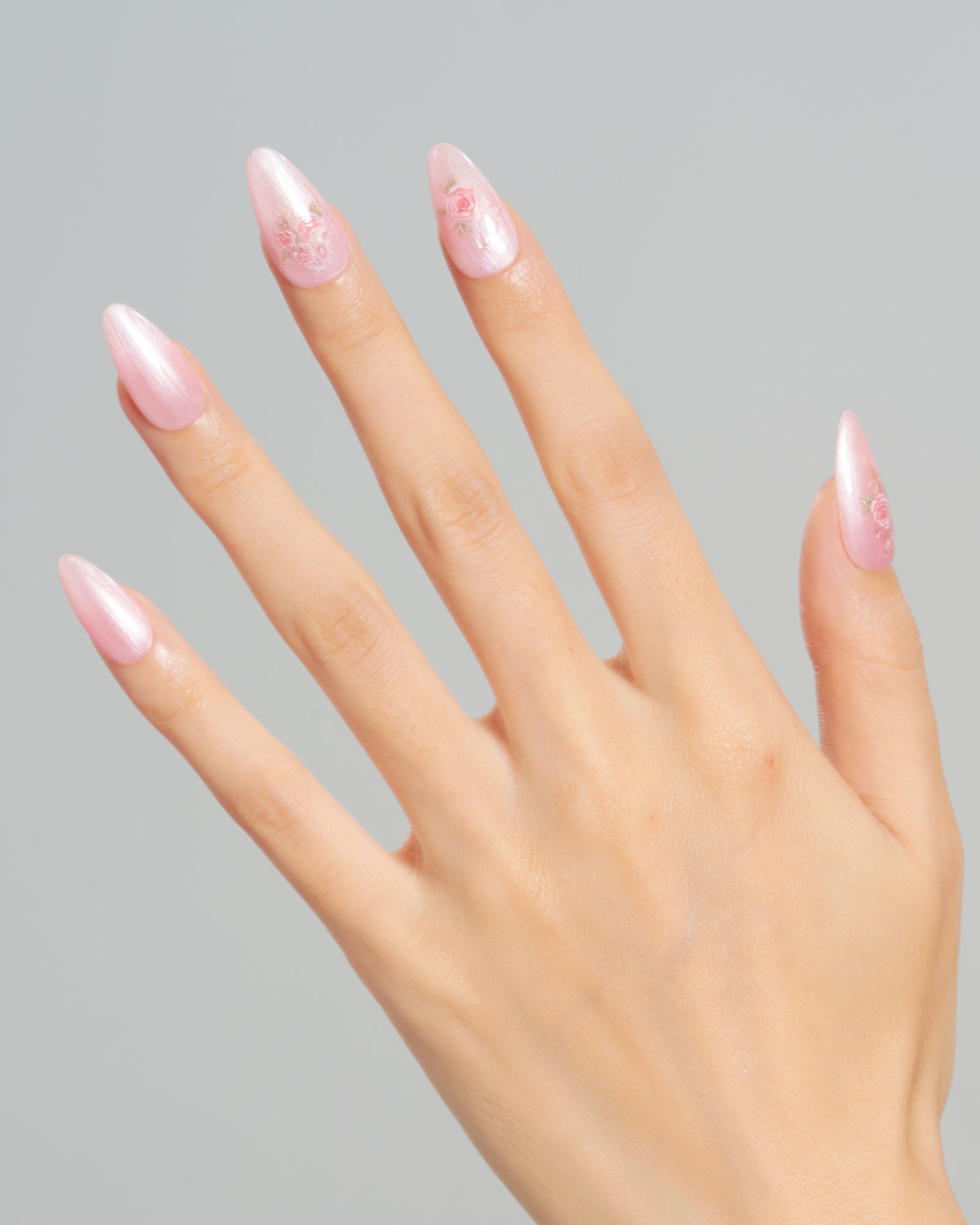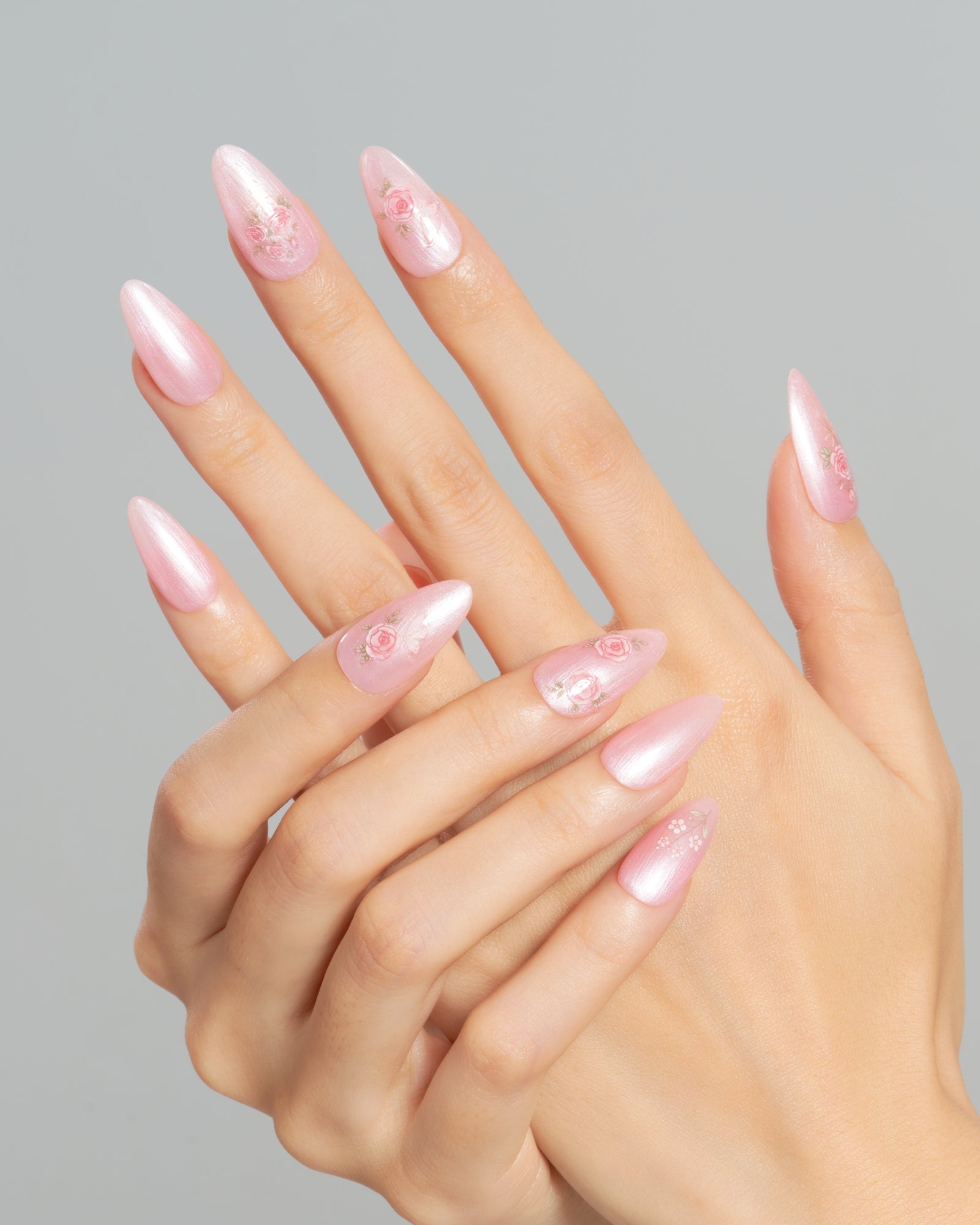 Soft Rose (Handmade)|manicure|real nail gel|flower|rose|pink|glossy|almond|medium|nature|vacation – Glamermaid Glam