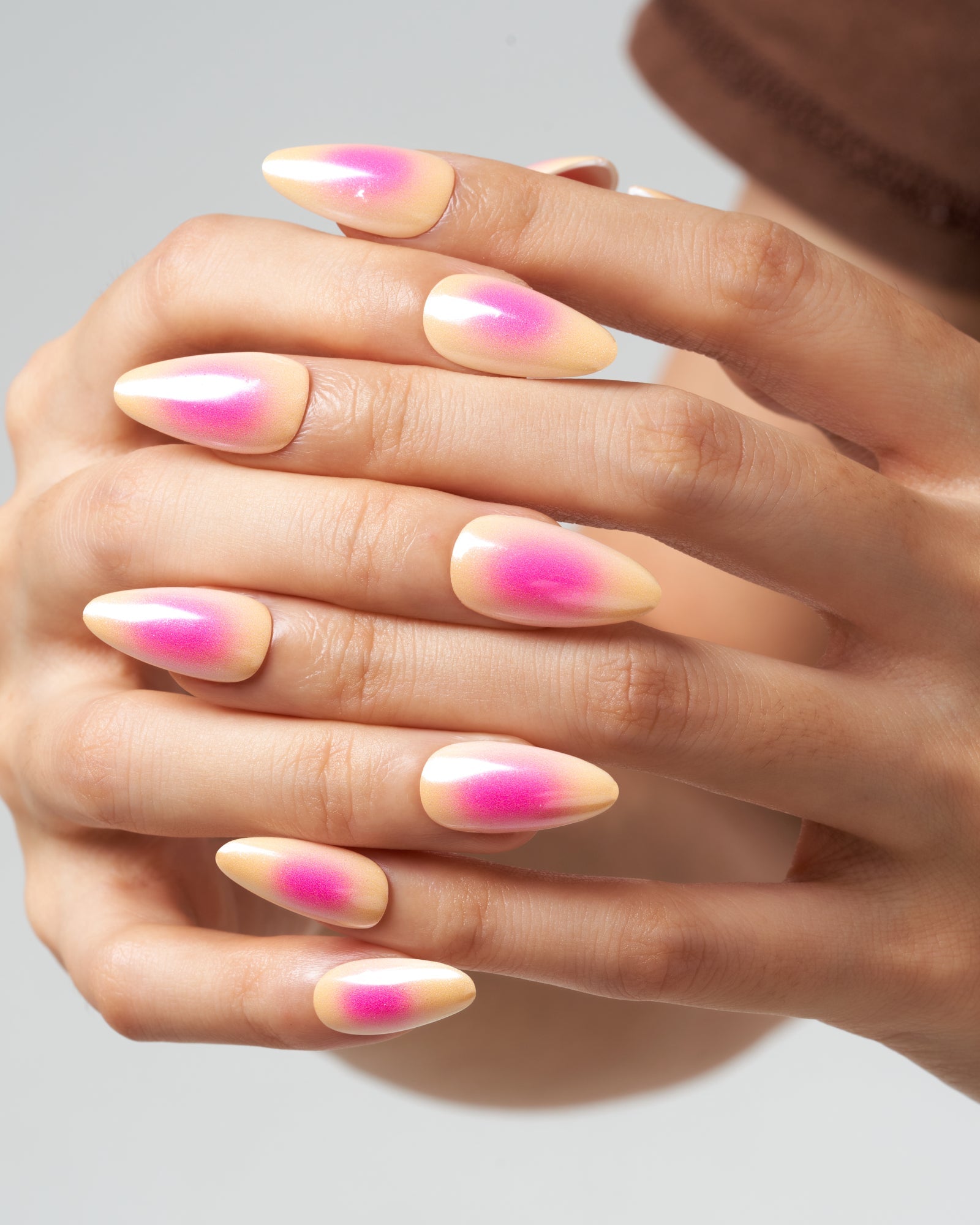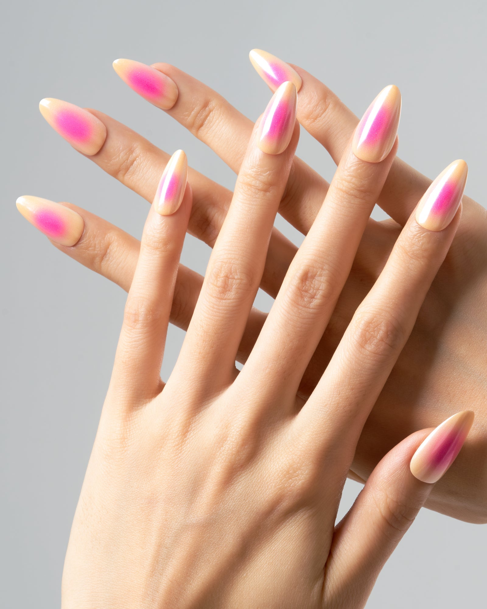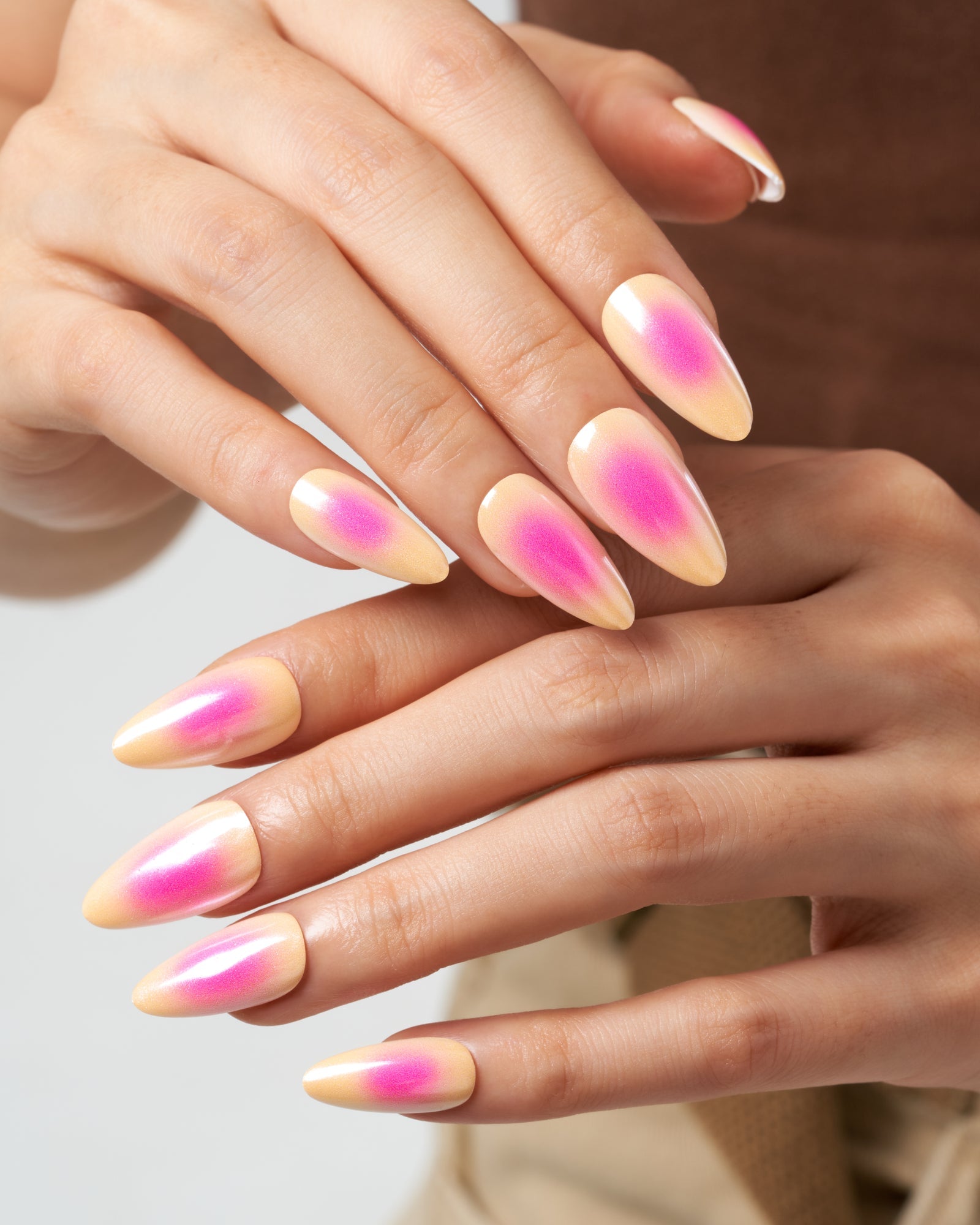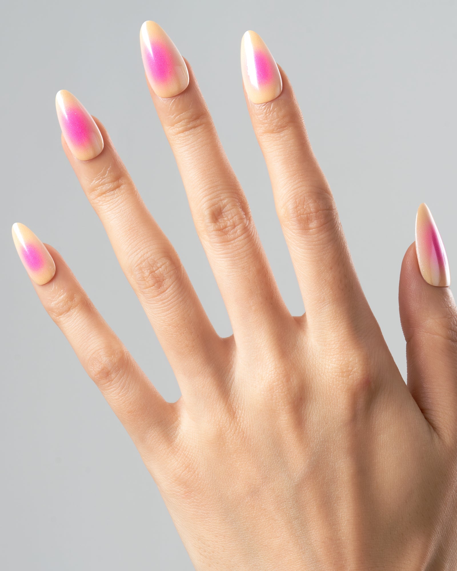 Butter Shine(Handmade)|manicure|aura nail|chrome nail|real nail gel|pink|yellow|glossy|almond|medium|solid|daily – Glamermaid Glam