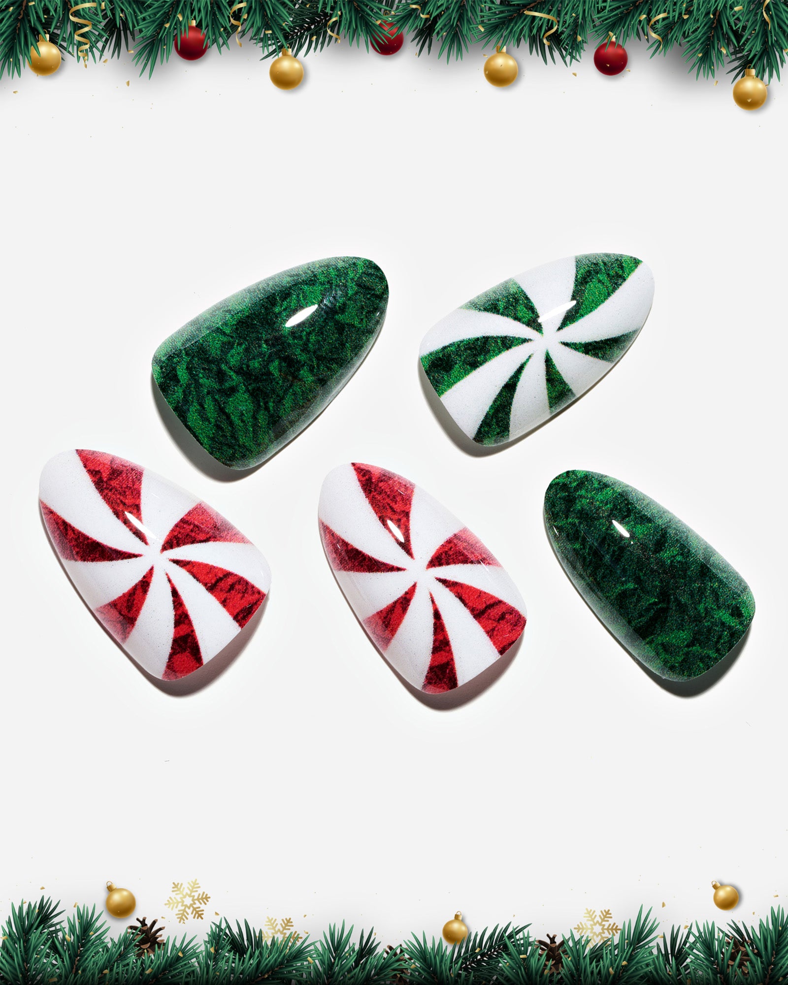 Christmas Windmill/Short Almond|manicure|christmas|jump color|colourful|green|glossy|almond|short|cartoon|party – Glamermaid Glam