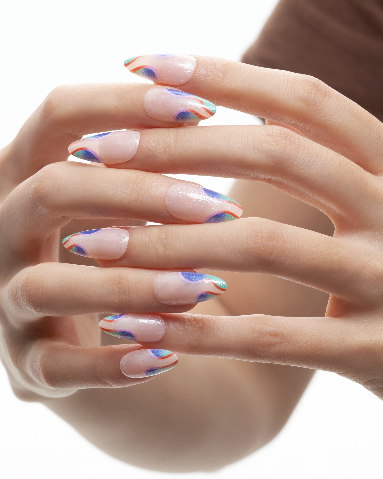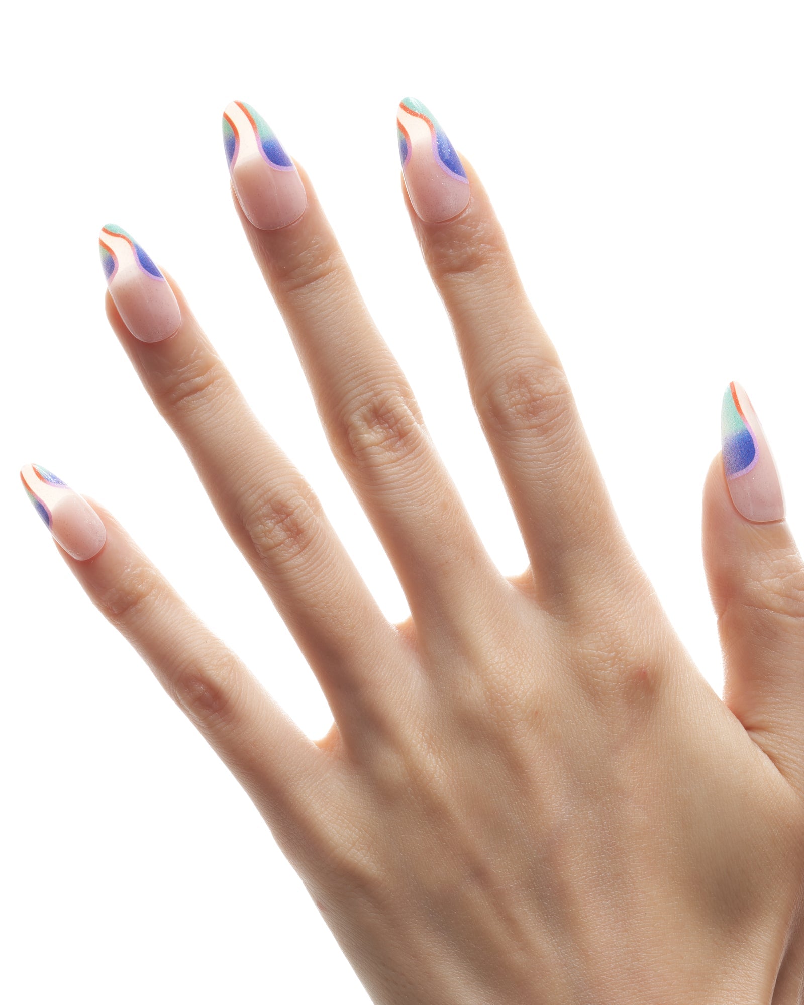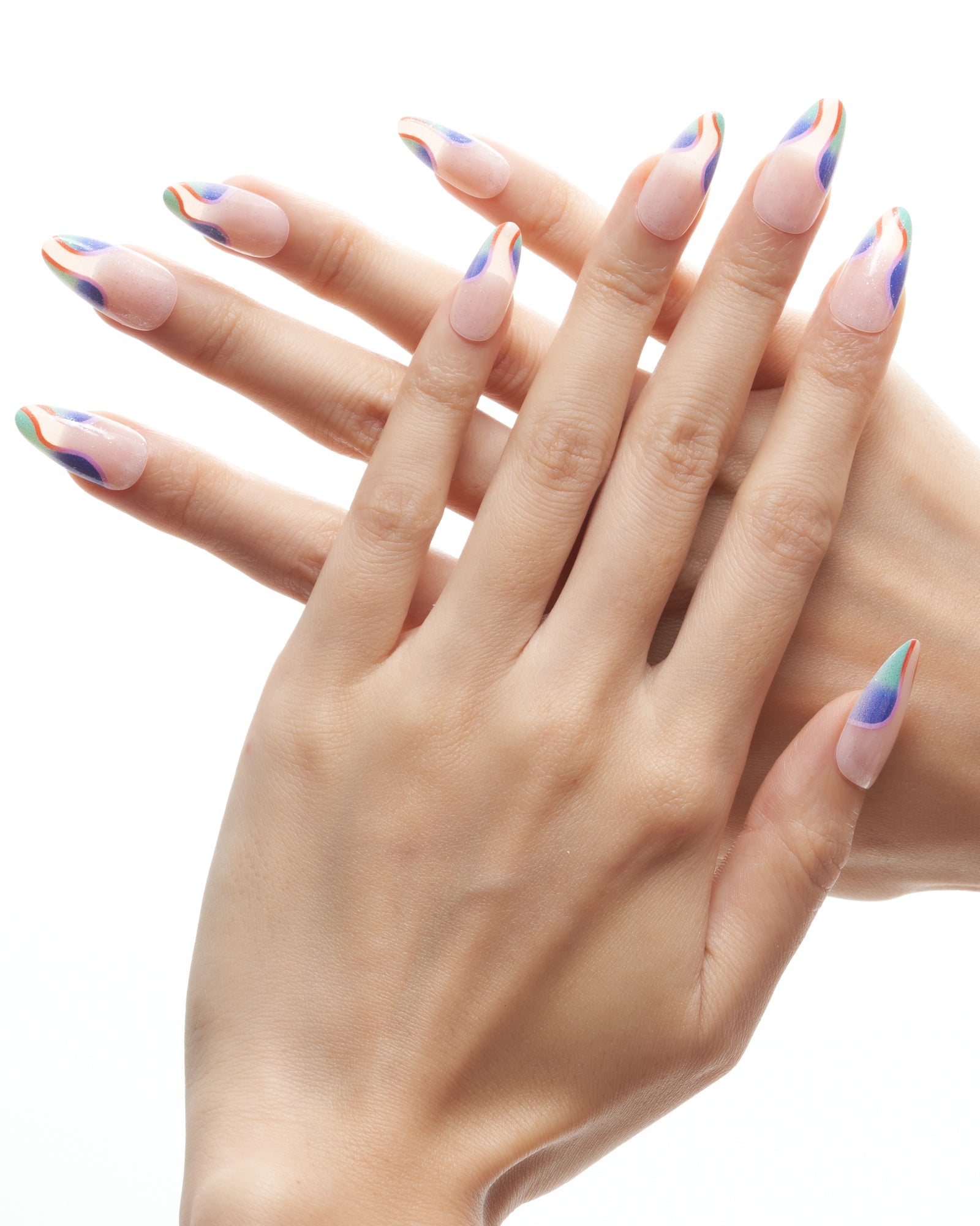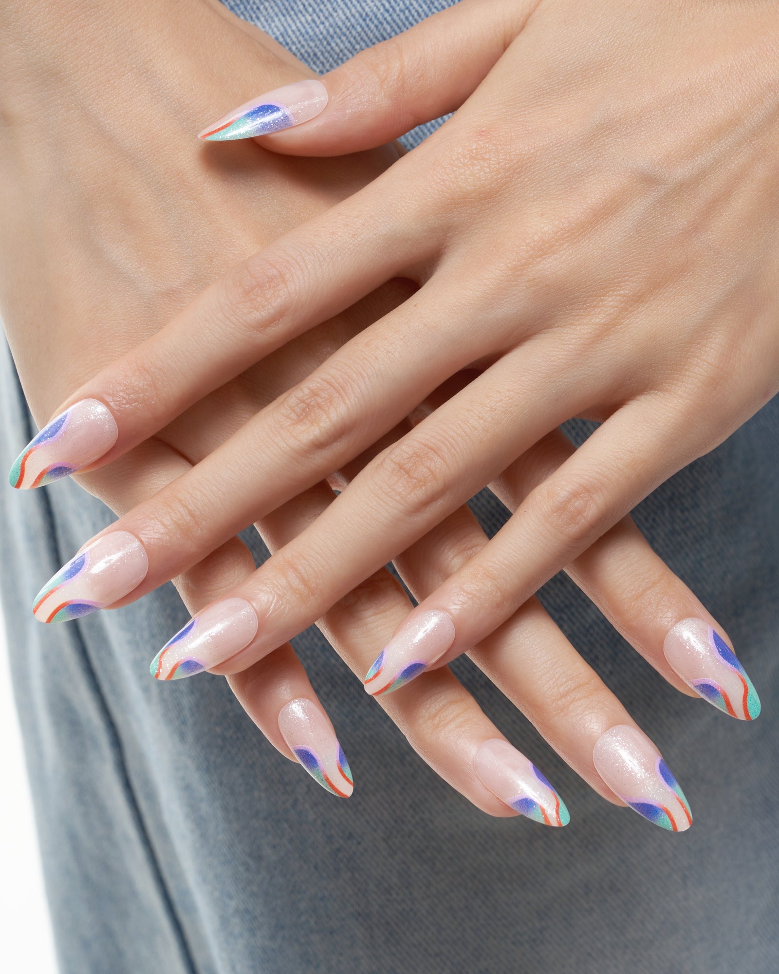 Groovy Lines|manicure|french tip|colourful|fine glitter|almond|medium|cartoon|daily – Glamermaid Glam